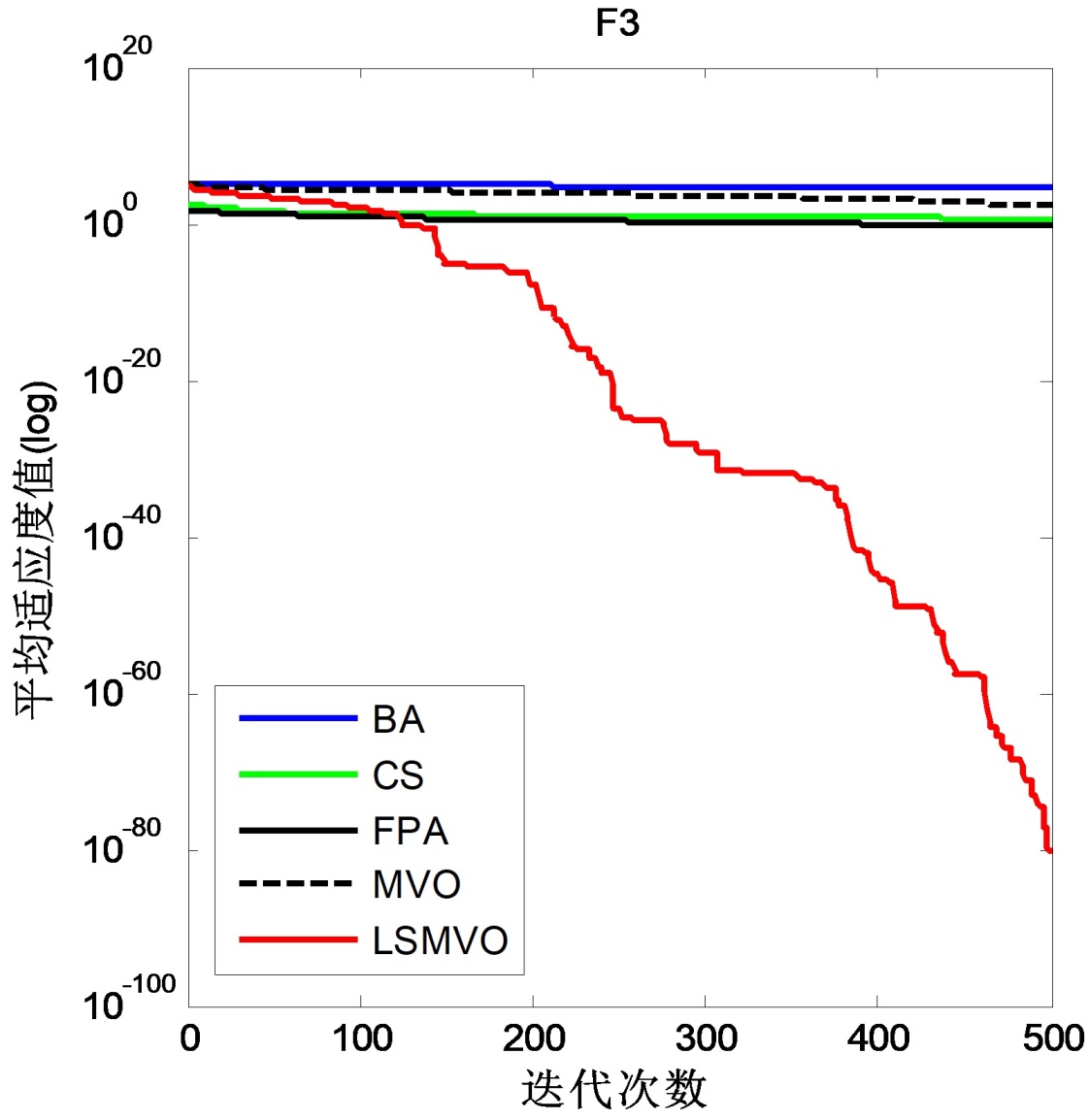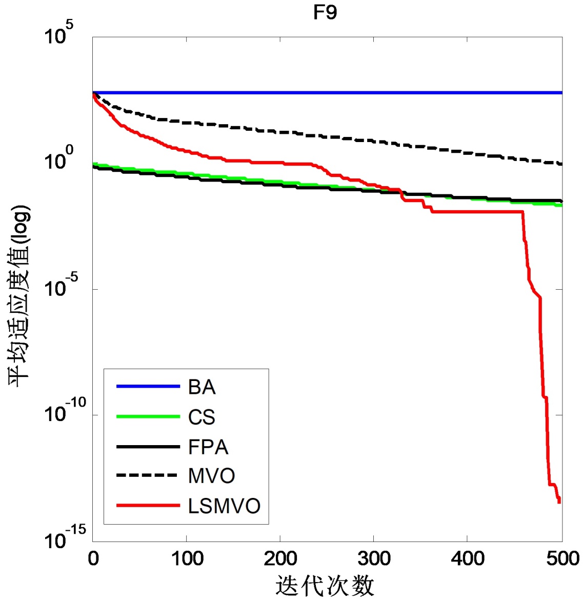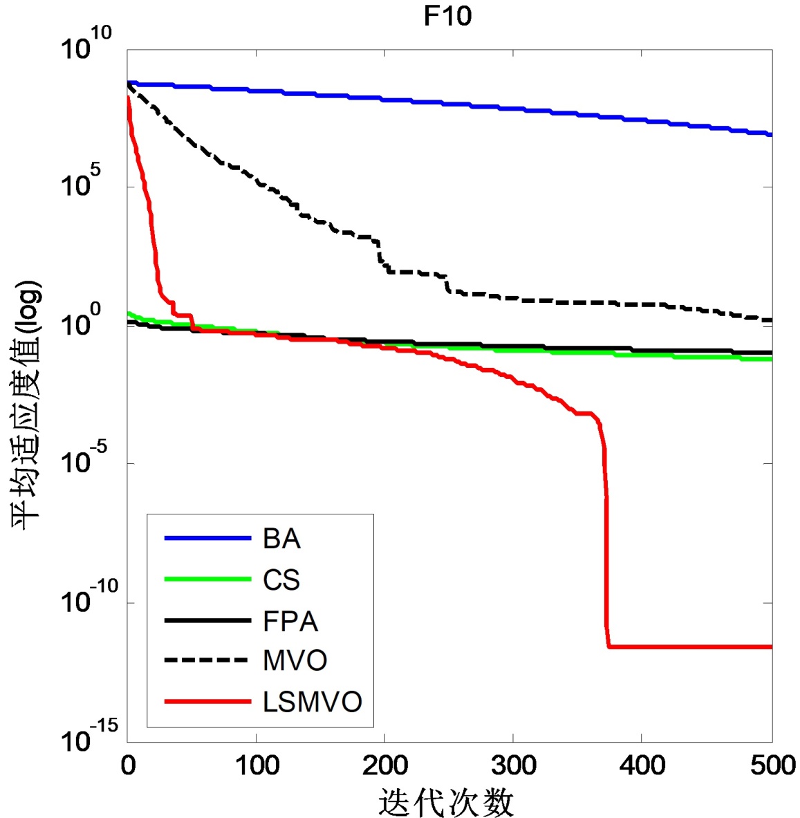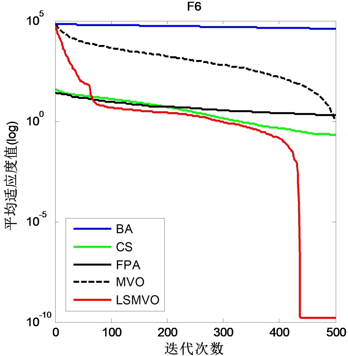 从图3~13可以进一步验证LSMVO的优越性。从图3、图4、图5、图10可以看出,当其他算法已接近收敛状态时,LSMVO仍保持继续寻优的能力。上述函数优化结果表明,加入单纯形法和Lévy飞行策略的LSMVO在函数优化中展现出较强优势,其测试结果更接近理论最优值,证实了该改进算法在函数优化问题中的可行性与有效性。