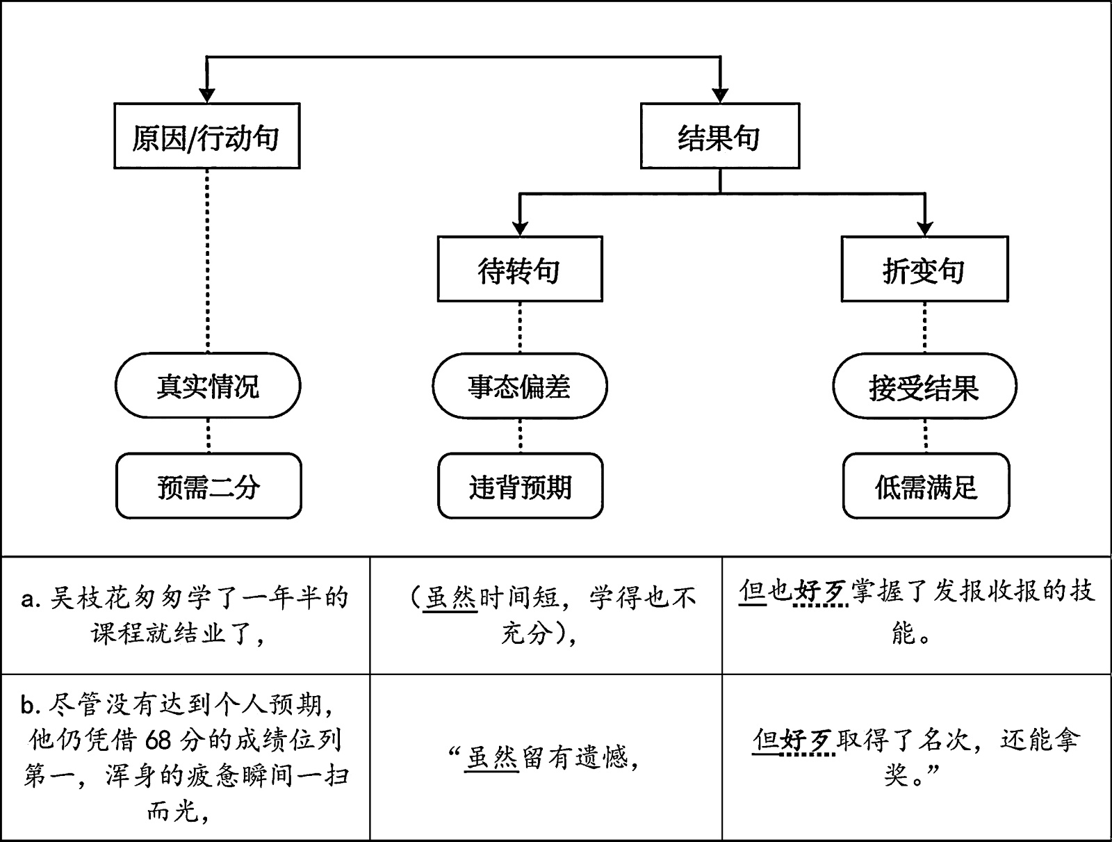 在因果关联层面,两类“好歹”有着共同的语义起点:承认所评价命题具备相对现实性,在句法分布上表现为两者排斥非现实性,但能接纳条件假设关系;两者均将等级秩序及其实现关系视作规约义,并对推断过程进行限制;两者在所得结果上表现出了反预期倾向。此后,由于“好歹”进入的句系统不同,其在语义内涵与话语结构方面也有所区别。
