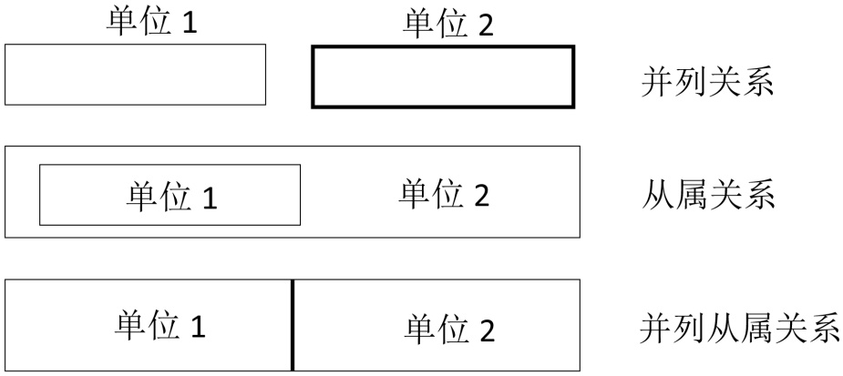 一个连接结构的组成单位之间可能存在不同的句法和语义关系,称为连接关系(nexus relations)。角色参照语法中一共有三种连接关系,如图3所示:并列关系(coordination),从属关系(subordination)和并列从属关系(cosubordination)。并列关系表示两个组成单位之间相互独立,每一个都可脱离另外一个单独出现;从属关系意味着其中一个组成单位是另一个论元,或者其中一个组成单位以某种方式修饰另一个;并列从属关系实质上是一种依存性的并列关系,此处的“依存性”指的是功能元共享,要注意的是,功能元相同并不等同于功能元共享。