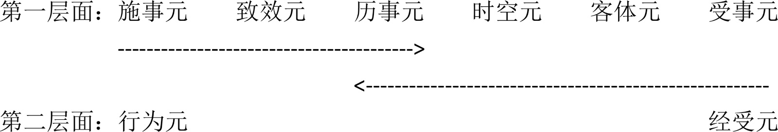 由该层级可知,在逻辑结构当中,行为元和经受元分别位于层级的两端,前者主体性最强,位于最左端,后者客体性最强,位于最右端。其它语义角色则根据其主体性或客体性的程度偏向行为元或经受元。功能元的引入、行为元–经受元的层级化构建以及连接类型与关系的系统划分,为后续跨语言复杂构式(如连动式、动结式、被动式等)的分析提供了关键性工具。