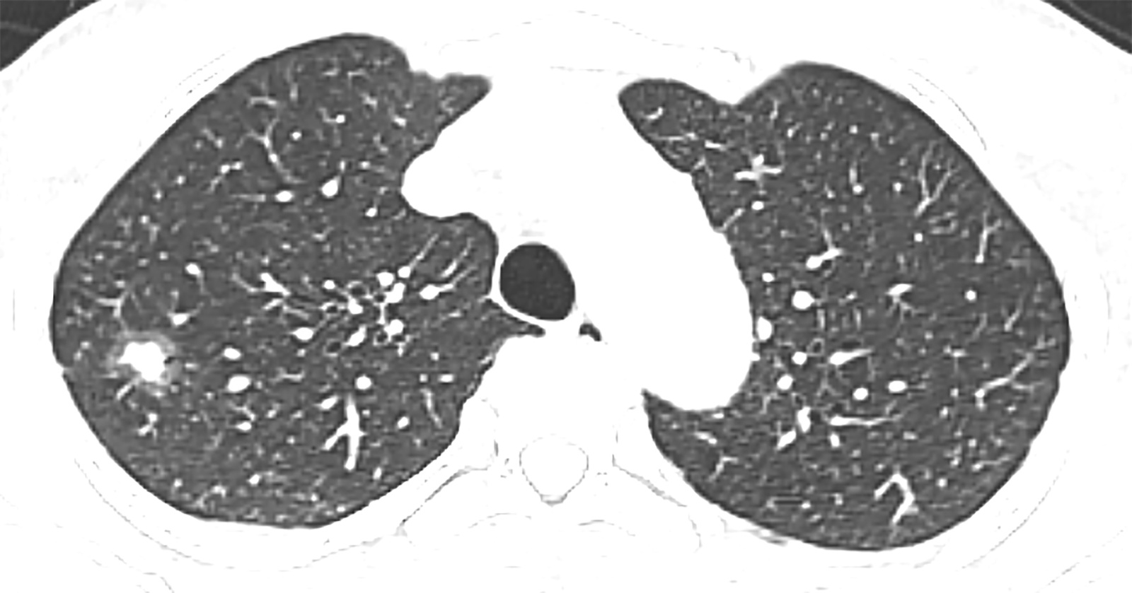 收集患者的临床资料,包括年龄、性别、吸烟史、cT分期、癌胚抗原(carcinoembryonic antigen level, CEA)水平。由2名具有7年以上诊断经验的影像科医师分别评估病灶CT特征,包括结节位置、边界、肿瘤最大径、实性成分最大径、分叶征、毛刺征、胸膜凹陷征、空泡征,并计算实性成分比例(consolidation/tumor ratio, CTR),CTR = 实性成分最大径/肿瘤最大径。