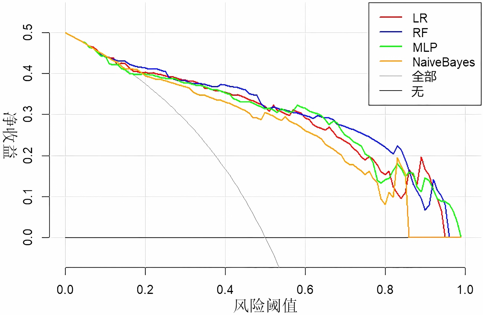 注:LR,逻辑回归;RF,随机森林;MLP,多层感知器;NB,朴素贝叶斯。