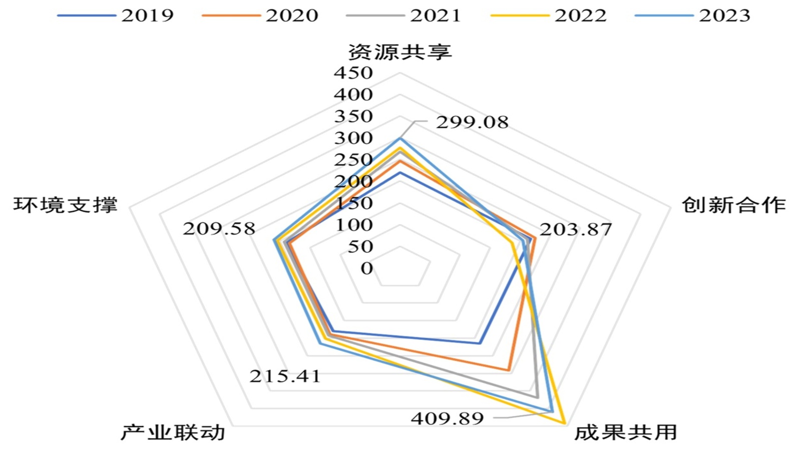 Figure 1. Yangtze river delta regional collaborative innovation index (2019~2023)