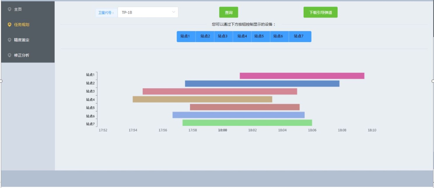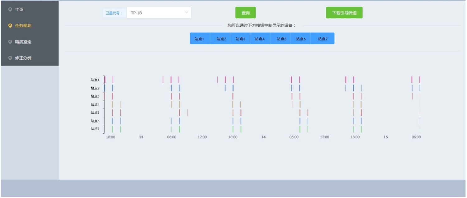 获取标校星预报轨道数据,根据各测量站的地理分布,自动化分析计算各设备的可视情况,同时给出时间规划和空间规划,以完成针对单站跟踪或多站联合跟踪开展跟踪任务规划、引导弹道生成等。
