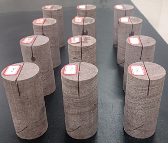 尽管现有研究已取得丰富成果,但针对红砂岩这一特定岩性,系统探究岩桥长度与干燥–饱水工况协同作用下力学特性及破裂模式的研究仍显不足,尤其是二者耦合效应对声发射特征参数的定量影响尚未形成明确结论。因此,开展本研究对完善含裂隙岩体水–力耦合理论及指导富水区域工程实践具有重要意义。