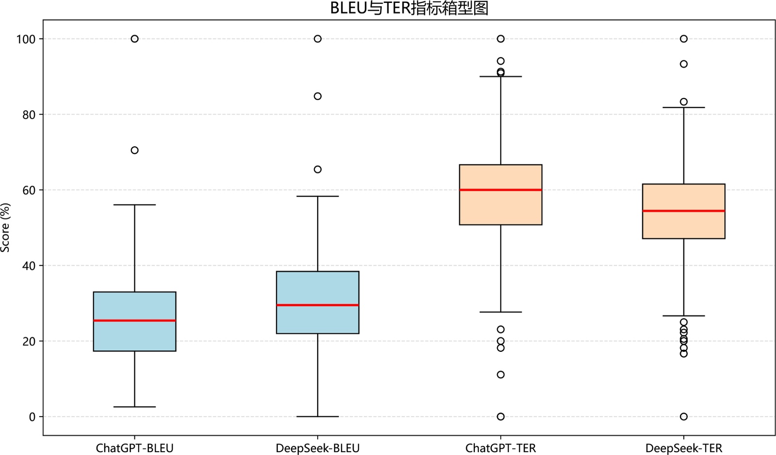 图1. BLEU与TER指标箱型图