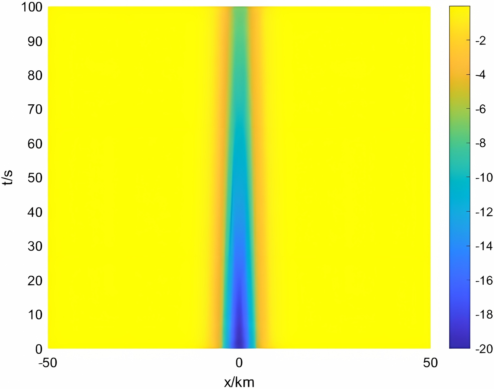 Figure 2. The propagation and evolution diagram of a single solitary wave (γ = 0.005)