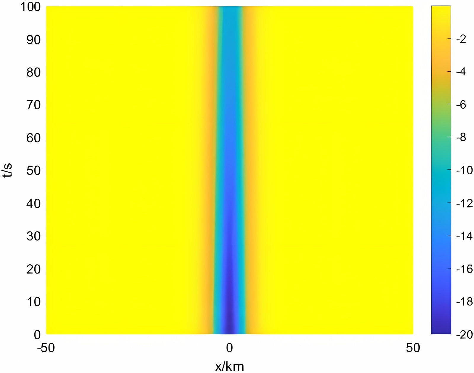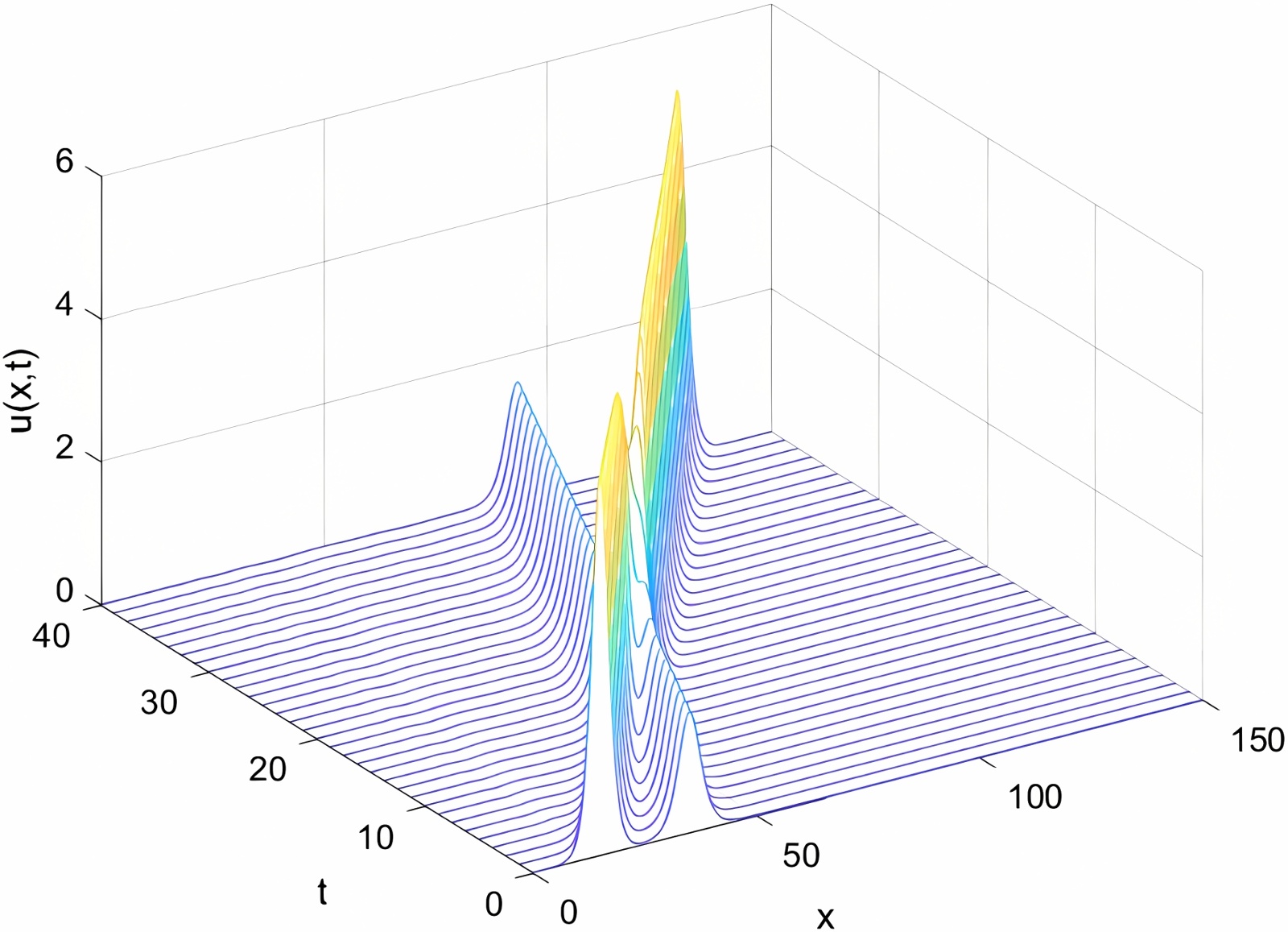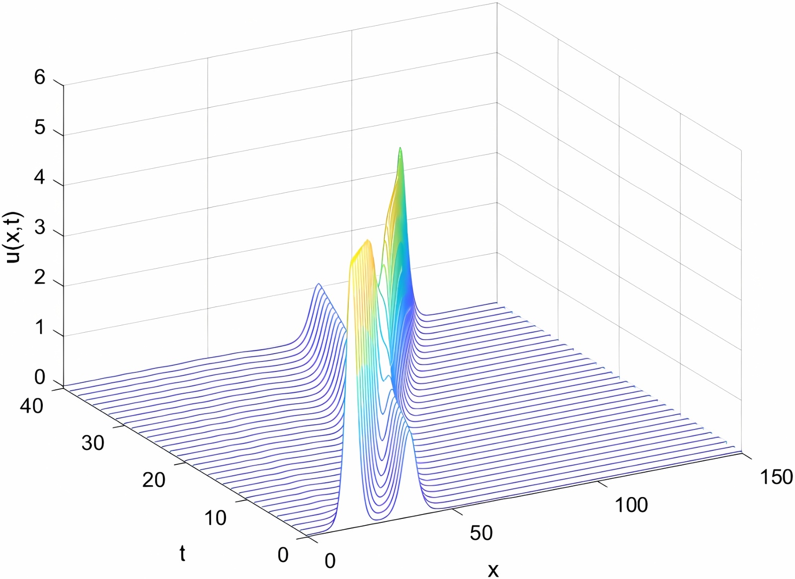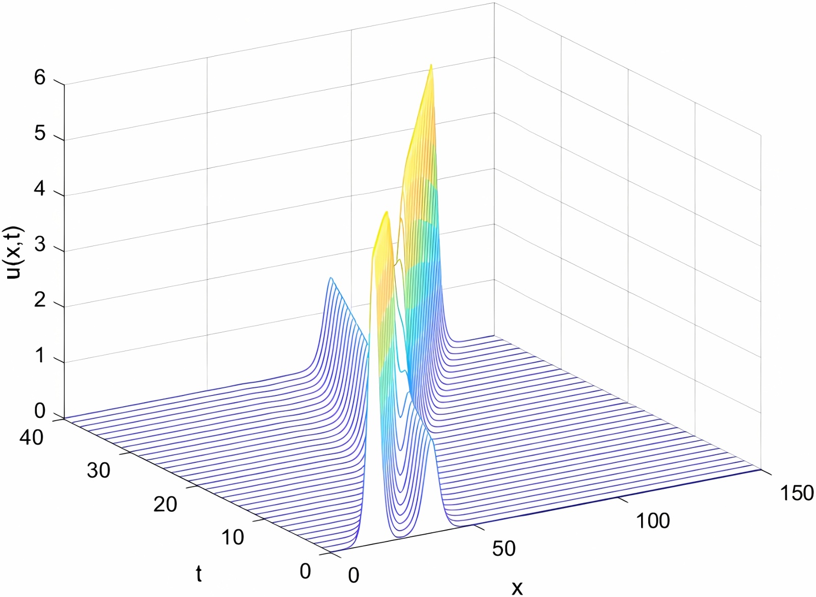 Figure 1. The propagation and evolution diagram of a single solitary wave (γ = 0.01)