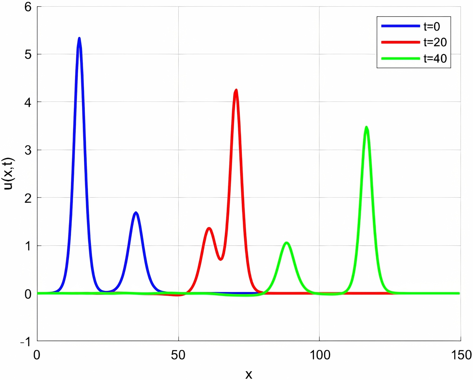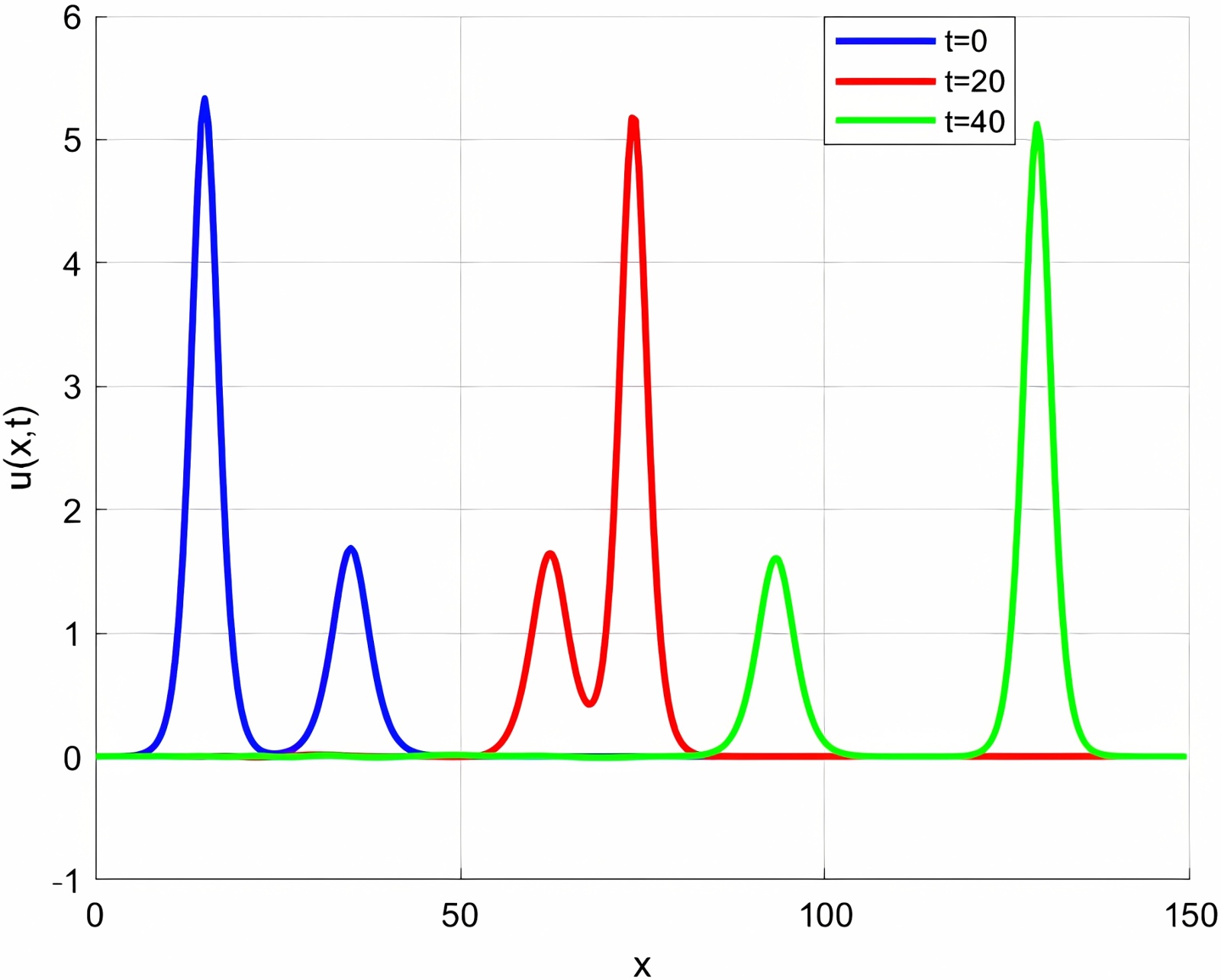 图2. 单孤立波传播演变图(γ = 0.005)