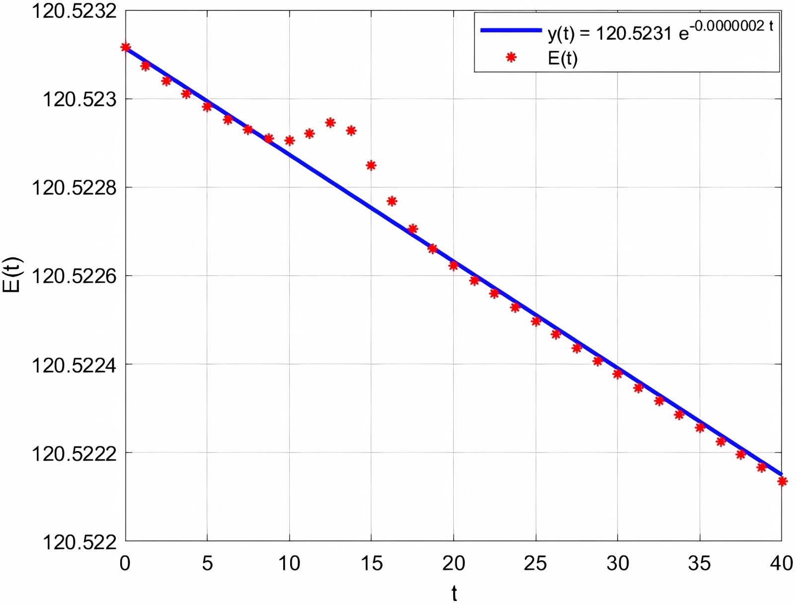,由图3和图4可见全局质量随时间呈指数衰减。图5所示能量规律近似表示为