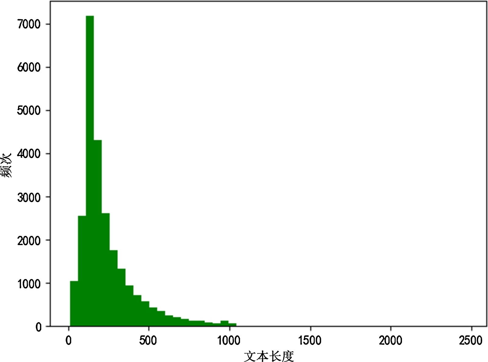 由上图可知,本数据集的绝大多数文本长度均在1000以下。