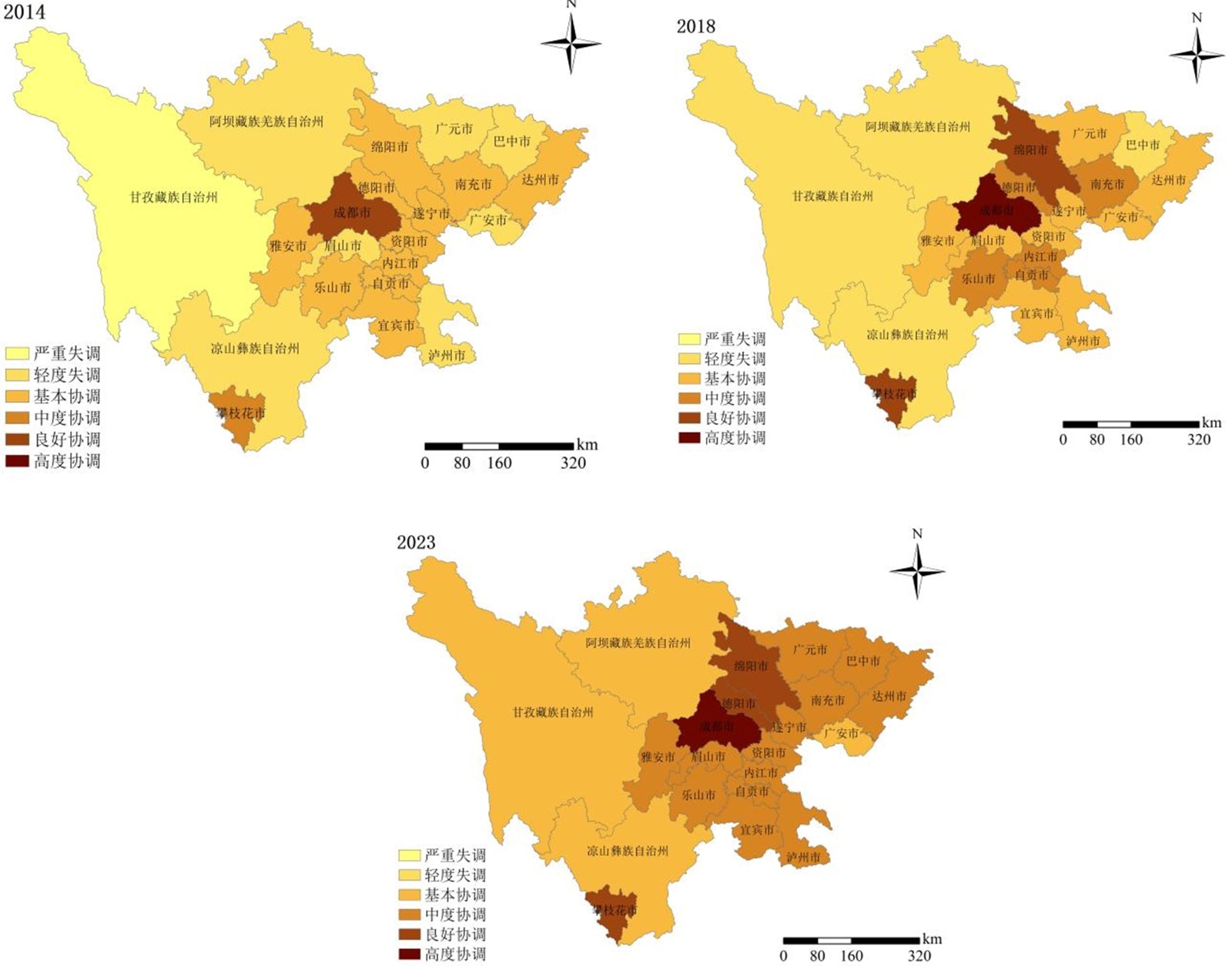 表2. 四川省城乡融合系统耦合协调度划分标准