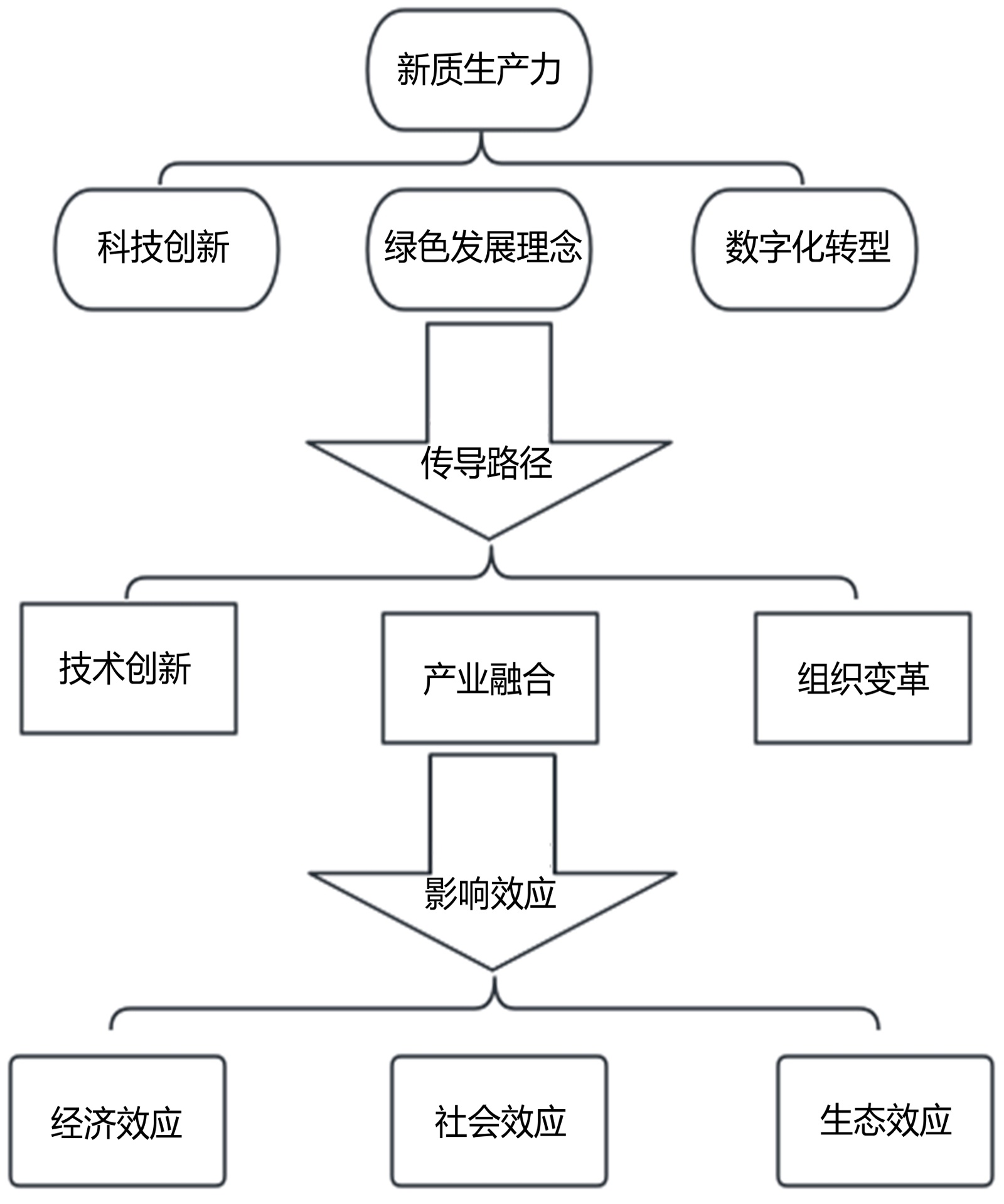 新质生产力通过科技创新、绿色发展和数字化转型等核心要素,以技术创新、产业融合和组织变革为传导路径,对农村集体经济的经济效益、社会效益和生态效益产生了全方位的积极影响,这一理论框架(图1)清晰地揭示了新质生产力赋能农村集体经济的内在机理。这不仅丰富了农村发展的理论体系,更为农村经济发展提供了新的分析视角和理论支撑。