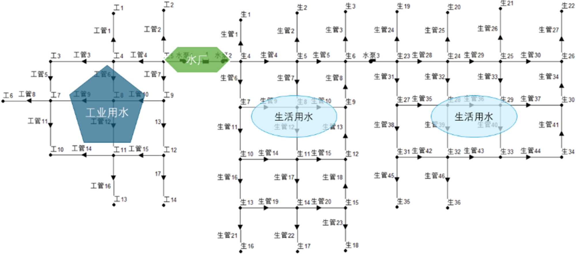 图1. 濮阳市生活区和工业区的供水系统模拟图
