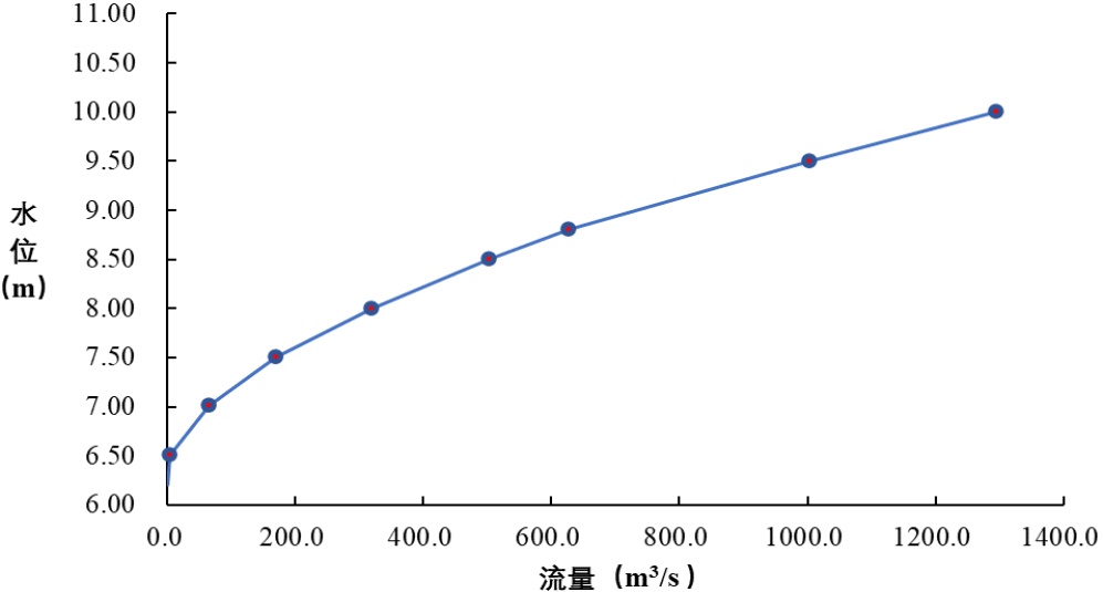 为计算时段中的平均下泄流量,m3/s;V1、V2为计算时段初、末的库存水量,m3;Δt为计算时段,取Δt = 3600 s。