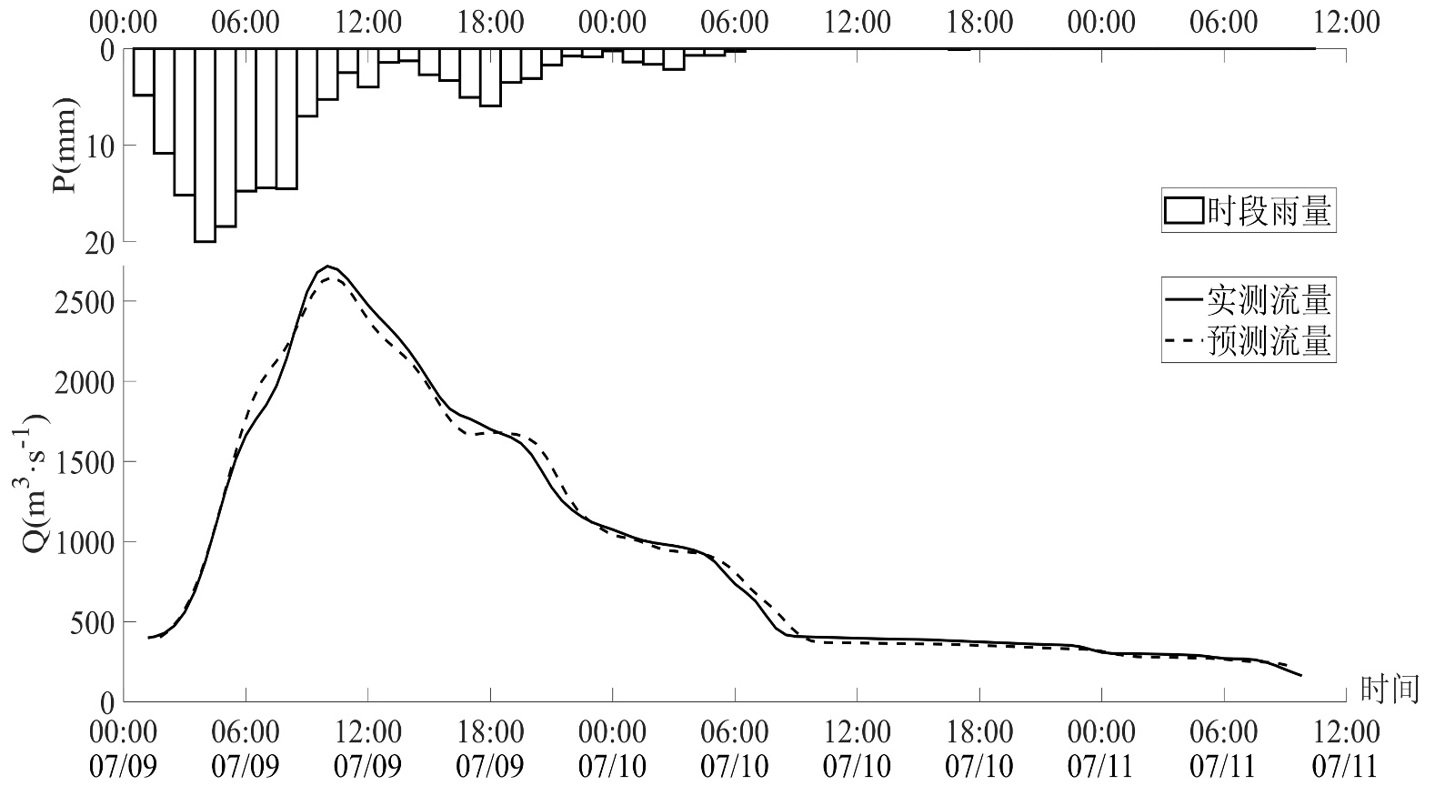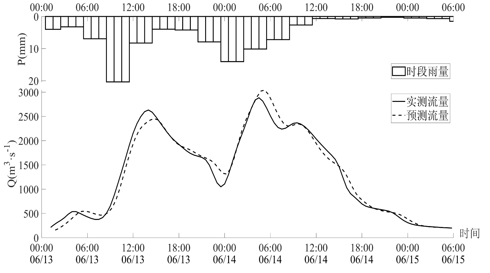 从预报洪峰流量来看,由表4可知,8场洪水的洪峰流量绝对误差总体较小,平均值为54.4 m3/s,最大值为138 m3/s (“2019·07·09”洪峰);其相对误差也较小,平均值为3.53%,最大值为6.9% (“2019·07·09”洪峰)。PRBP模型预测的洪峰流量的误差也较小。总体上GRU模型在洪峰流量预测精度方面略高于PRBP模型。