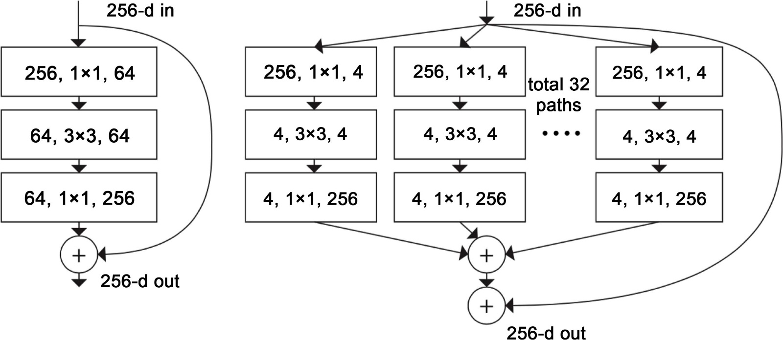 Figure 2. ResNet and ResNeXt (C = 32) structures [9]