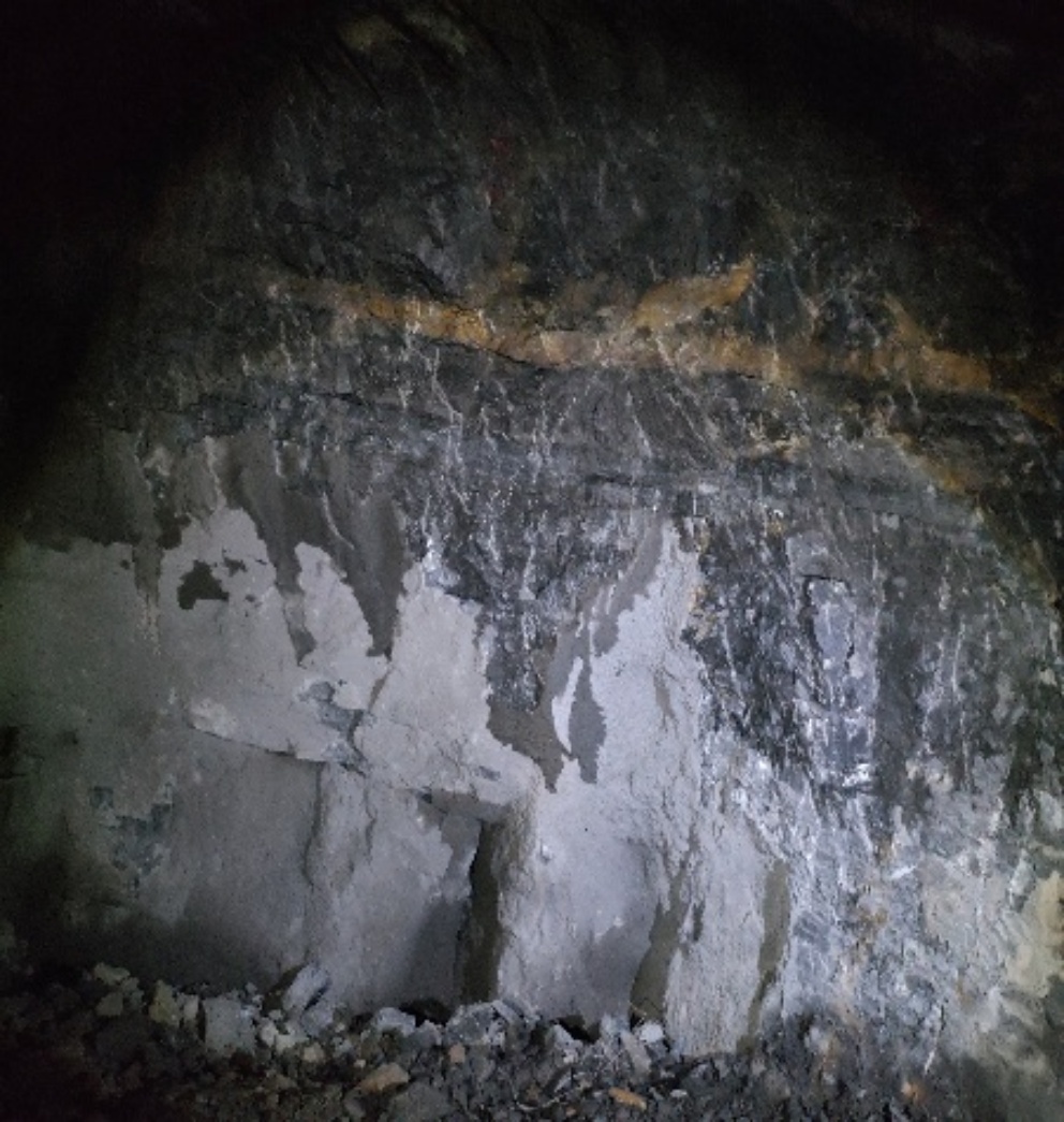 根据破碎状况分布图、纵波波速分布图和含水推断图、开挖风险等级图分析,ZK152+208~ZK152+258、ZK152+258~ZK152+308、ZK152+308~ZK152+358围岩岩体反射信号较强,整体预警等级一般,局部预警等级较高。推测围岩总体地质情况较差,地层岩性主要以三叠系下统嘉陵江组三段灰岩为主,围岩破碎,夹层发育,存在泥质夹层,岩层层间结合差,岩层裂隙张开可能较大,可能存在溶蚀空腔,围岩完整性差,自稳能力差,拱顶与拱腰易掉块,裂隙水较发育,呈线流状–股状分布,推断围岩为Ⅳ级。