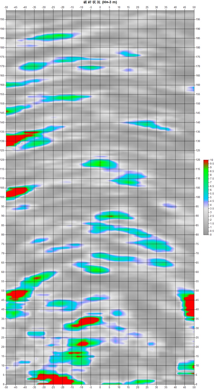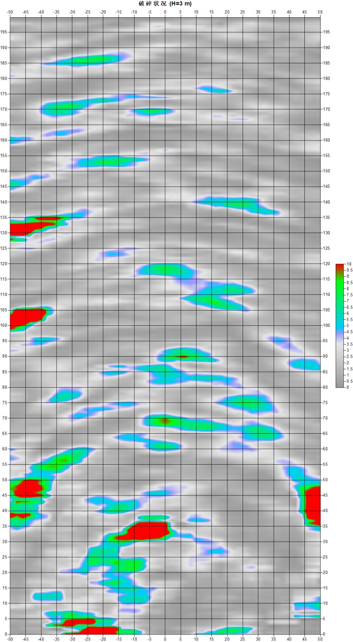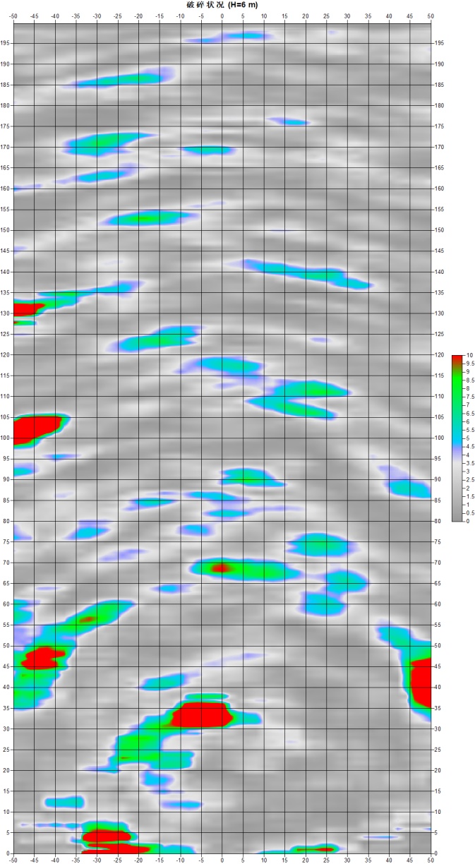 图4. 岩体破碎状况分布图(高度−6 m、−3 m、0 m、3 m、6 m、9 m)