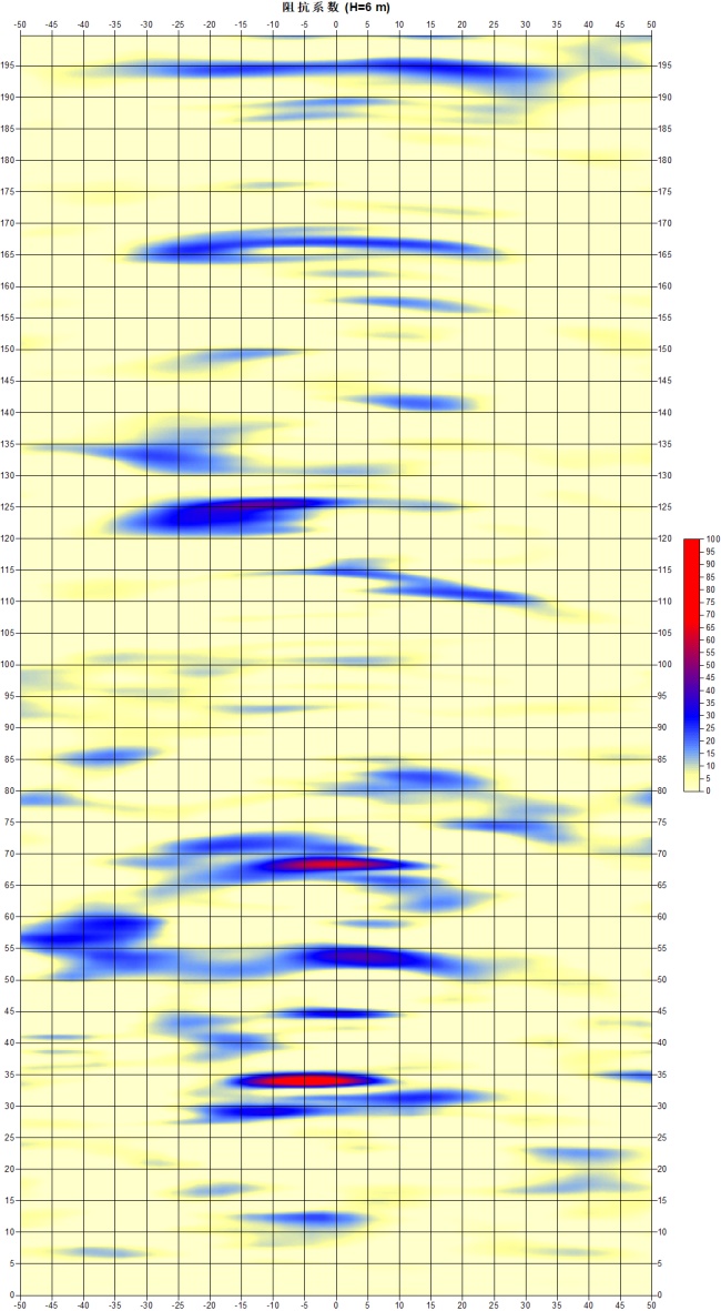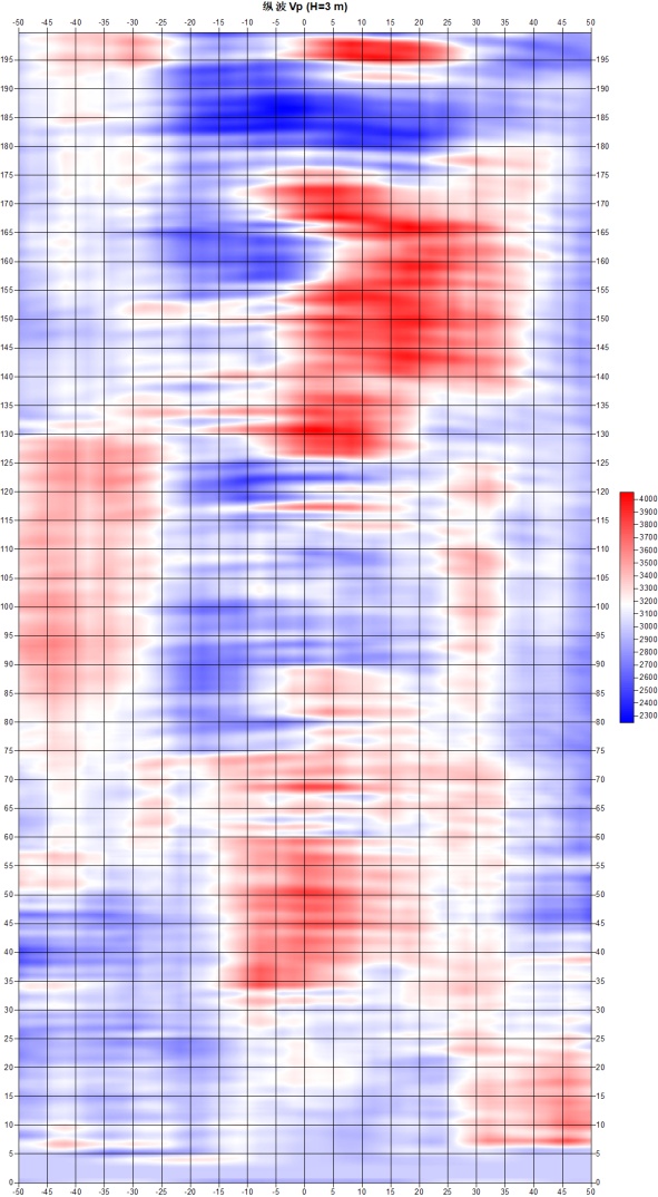 TSP超前地质预报系统自带三维超前预报处理软件,数据采集、处理和评估为一体,在常见的MS Window窗口进行交互作用。通过三维超前预报处理软件,可以获得探测范围内的全部岩石力学参数,如弹性模量和泊松比等,利用探测到的物理力学参数,可预测进行深度方向及其周围岩层的构造变化。探测范围可达到150 m,硬岩层甚至可达200 m,在现场进行数据采集时,能伴随施工连续采集,不影响掘进作业。