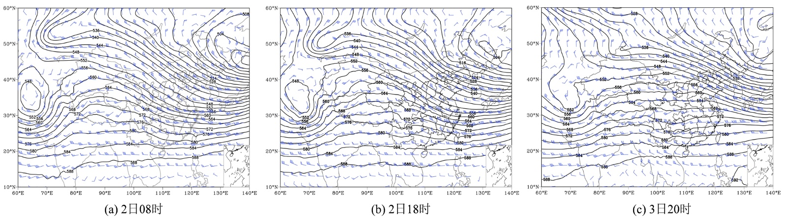 图2. 3月2~3日500 hPa环流场