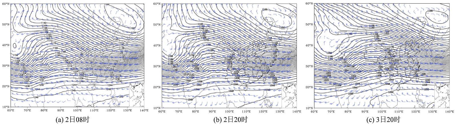 图3. 3月2~3日200 hPa环流场