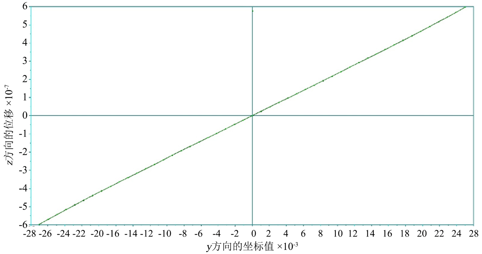 图7是横坐标是几何图形上沿轴线方向的坐标。其中纵坐标是z方向的位移。