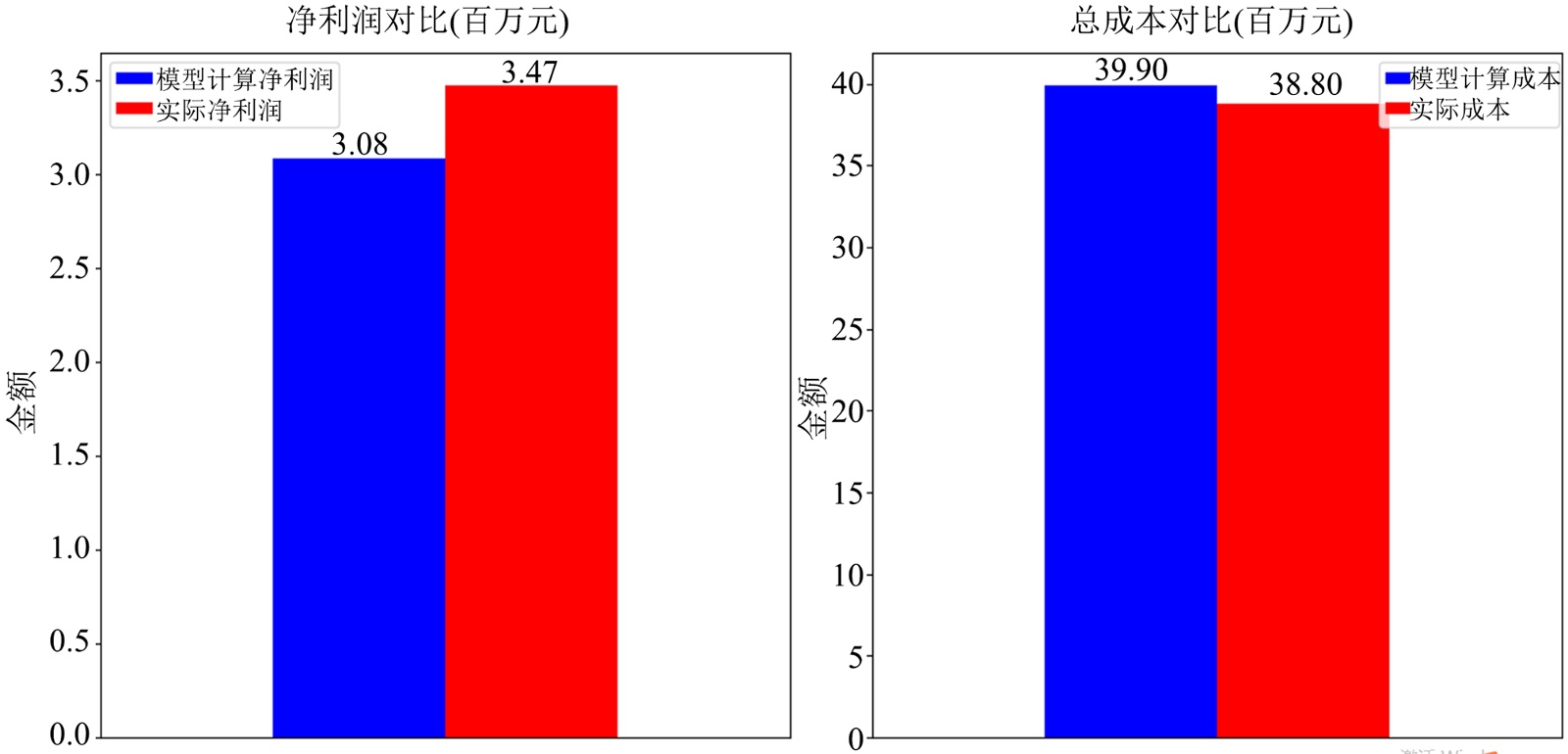 图2. 模型计算结果与企业实际财务数据的对比验证