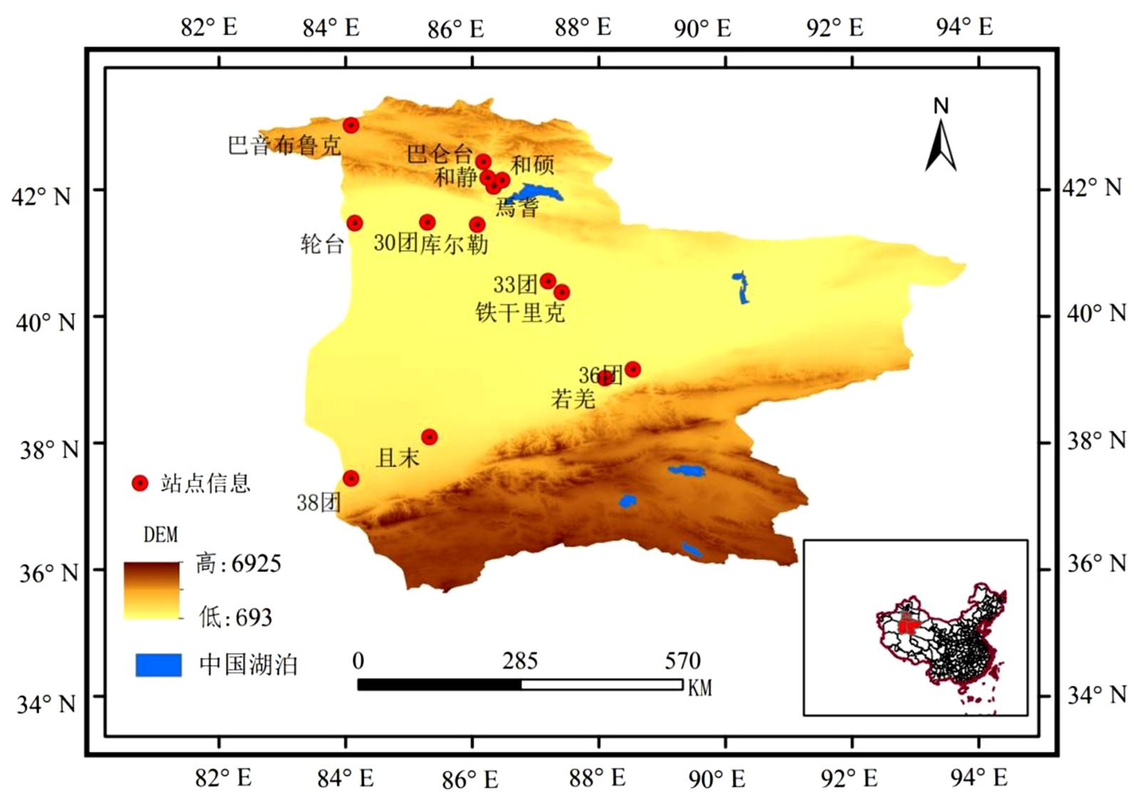 图1. 研究区域地形及站点分布示意图