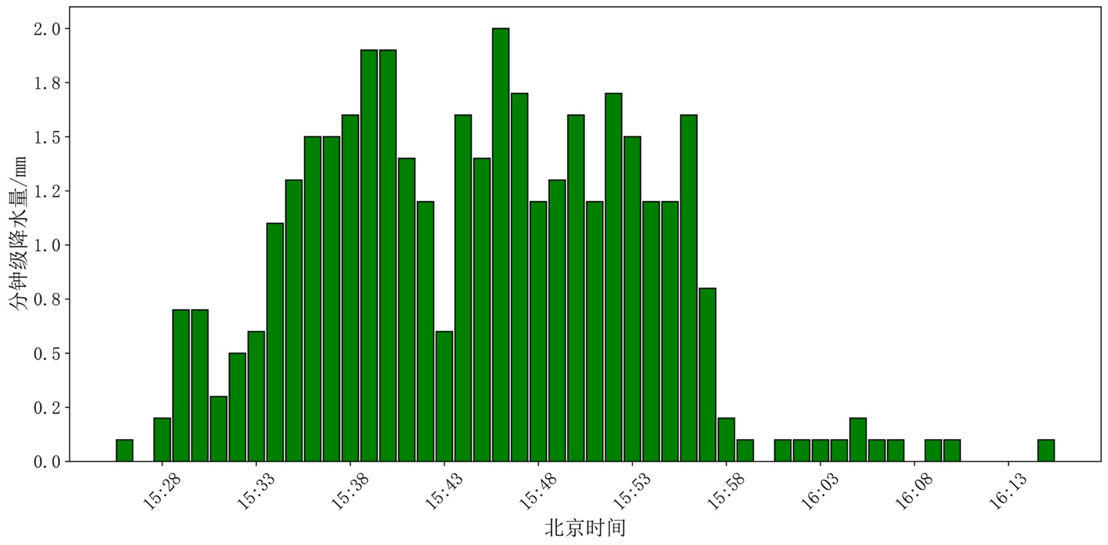 图2. 2025704个例的极端降水事件逐分钟降水量时序图