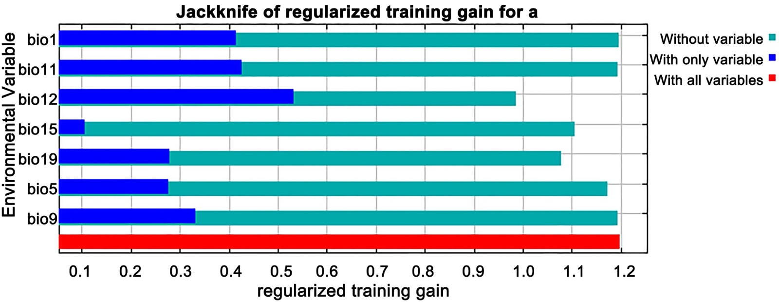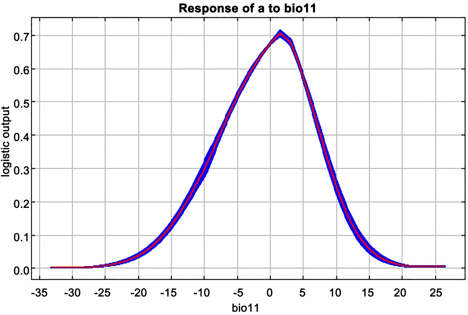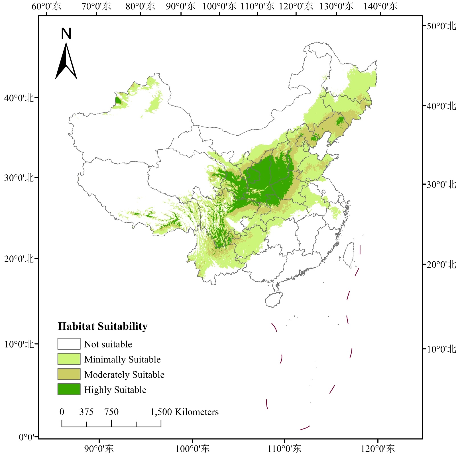 近年来,物种分布模型(SDM)能有效揭示物种分布格局及其对气候变化的响应,为生物多样性保护提供关键科学依据[6] [7]。MaxEnt等模型在小样本条件下表现出高精度与强实用性,广泛应用于濒危物种保护、入侵种预警及未来分布预测[8]。
