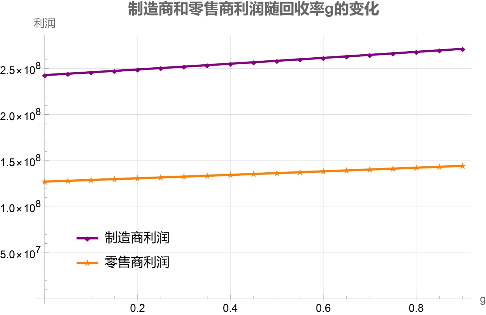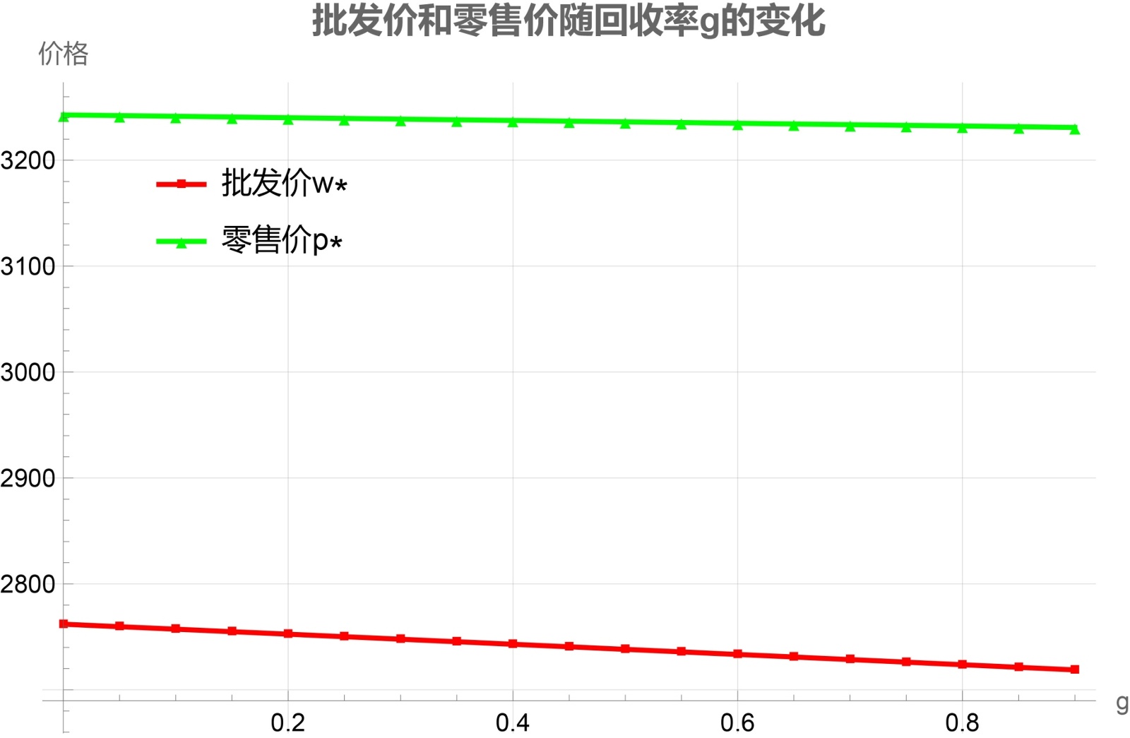 品牌回收率g的增加意味着更多产品被回收和再制造,这显著降低了制造商的单位生产成本;成本下降使制造商能够在保持利润的同时降低批发价w以扩大市场份额,而零售商也因进货成本降低和再制造产品带来的价格竞争力,能够下调零售价p来吸引更多消费者,从而在供应链中形成成本节约向终端价格传递的良性循环。