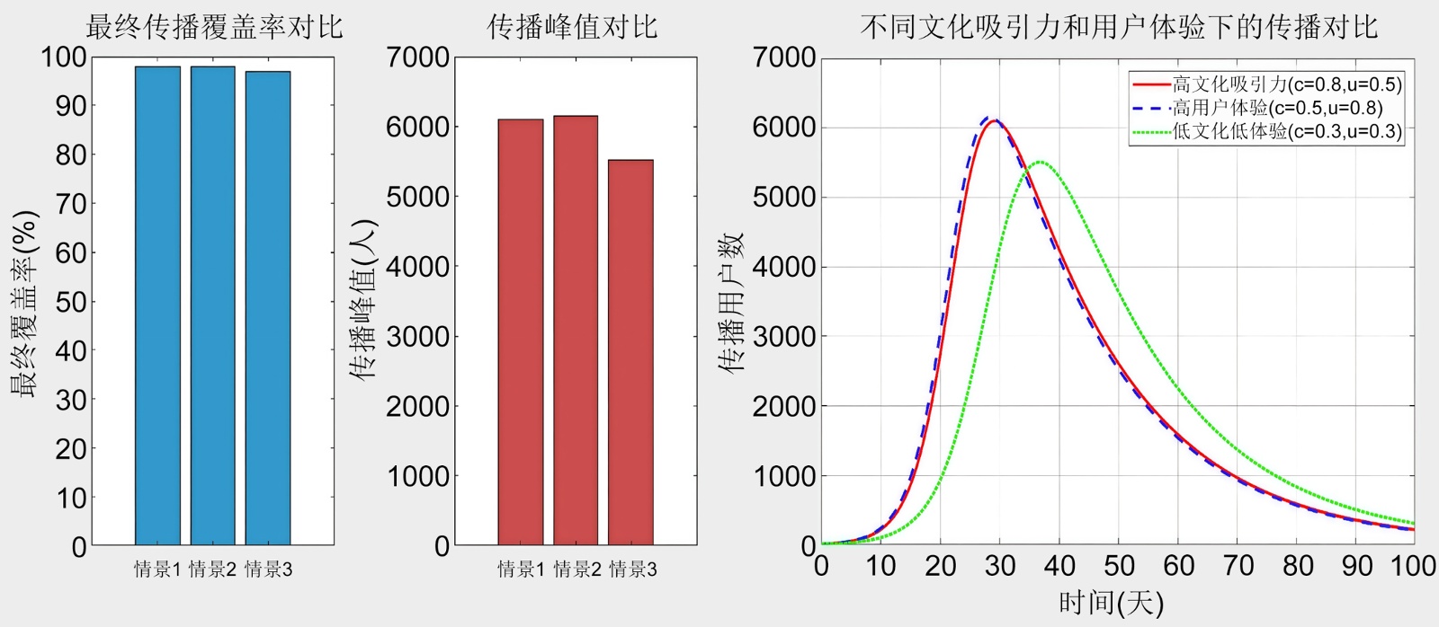 。通过对比不同情景下传播用户数量与最终覆盖率的变化,可明确文化内容与游戏体验在传播过程中的各自作用及其协同效应。