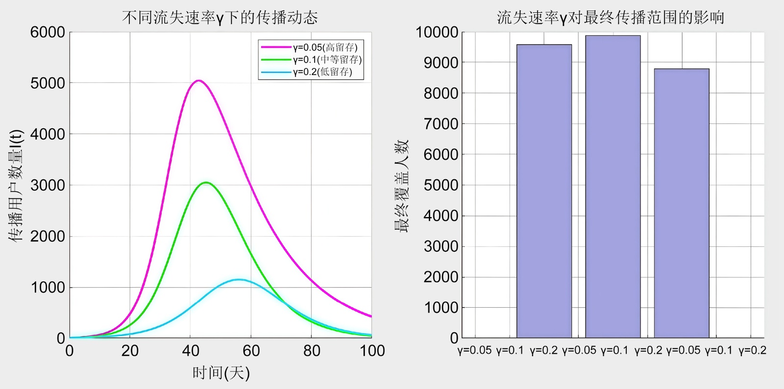 γ (流失速率):描述了单位时间内,传播用户中流失的比例。其倒数