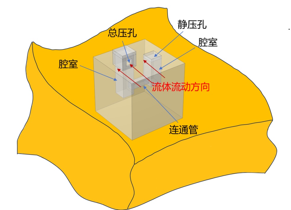 是流体的静压力,ρ是流体的密度,v是流体的流速。伯努利定理的主要内容是:在流动的不可压缩、无粘性流体中,沿着流线的各个点,静压能、动能和重力势能之和保持不变。作为皮托管的微型化设计,总压孔与静压孔之间的高度差足够小,影响可以忽略不计。