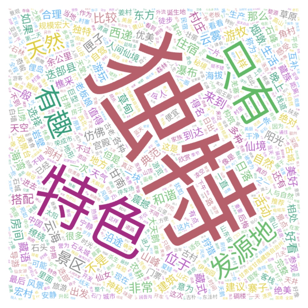 Figure 6. Online word cloud of natural scenery enthusiasts’ reviews