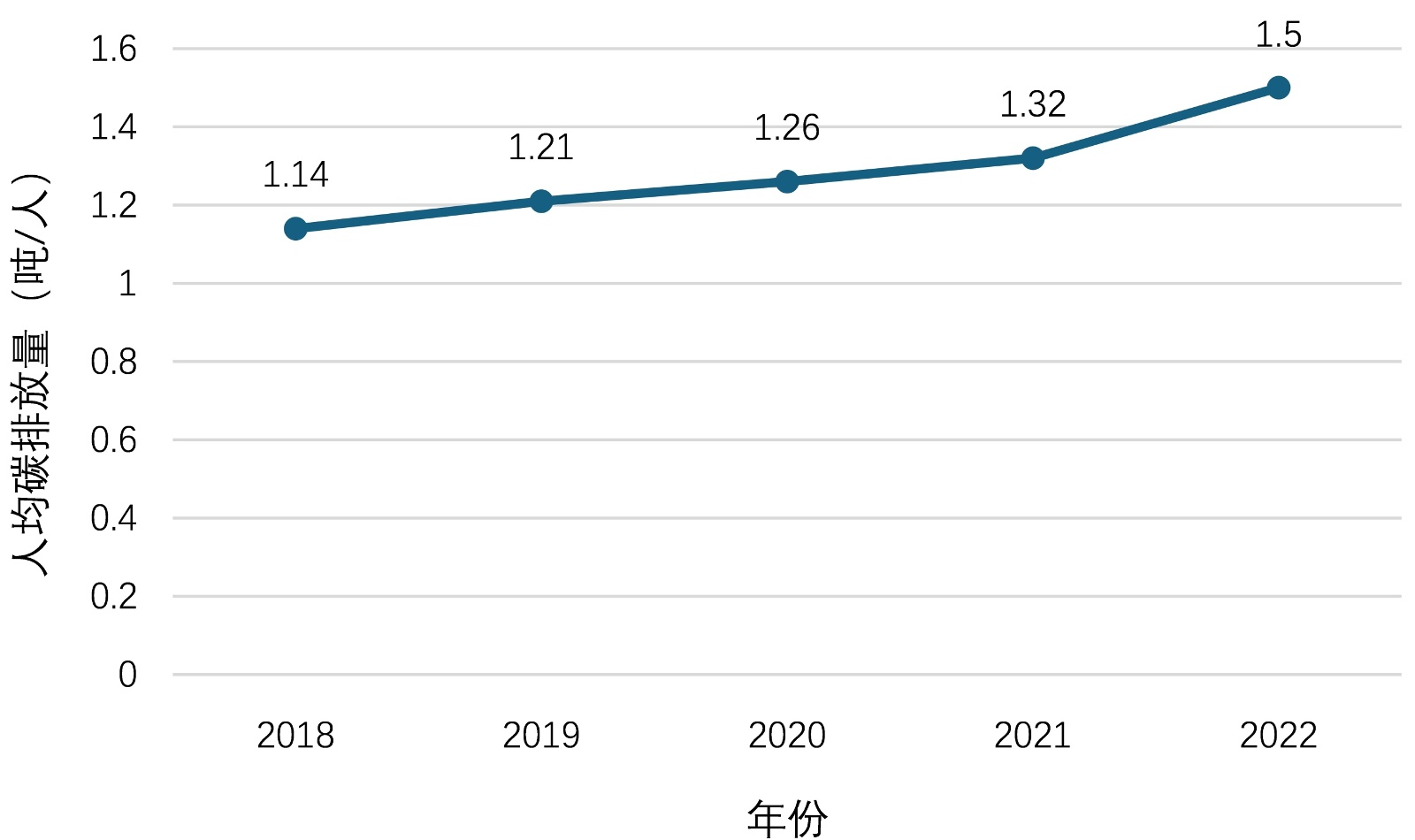 图2. 2018~2022年成都市人均碳排放量趋势