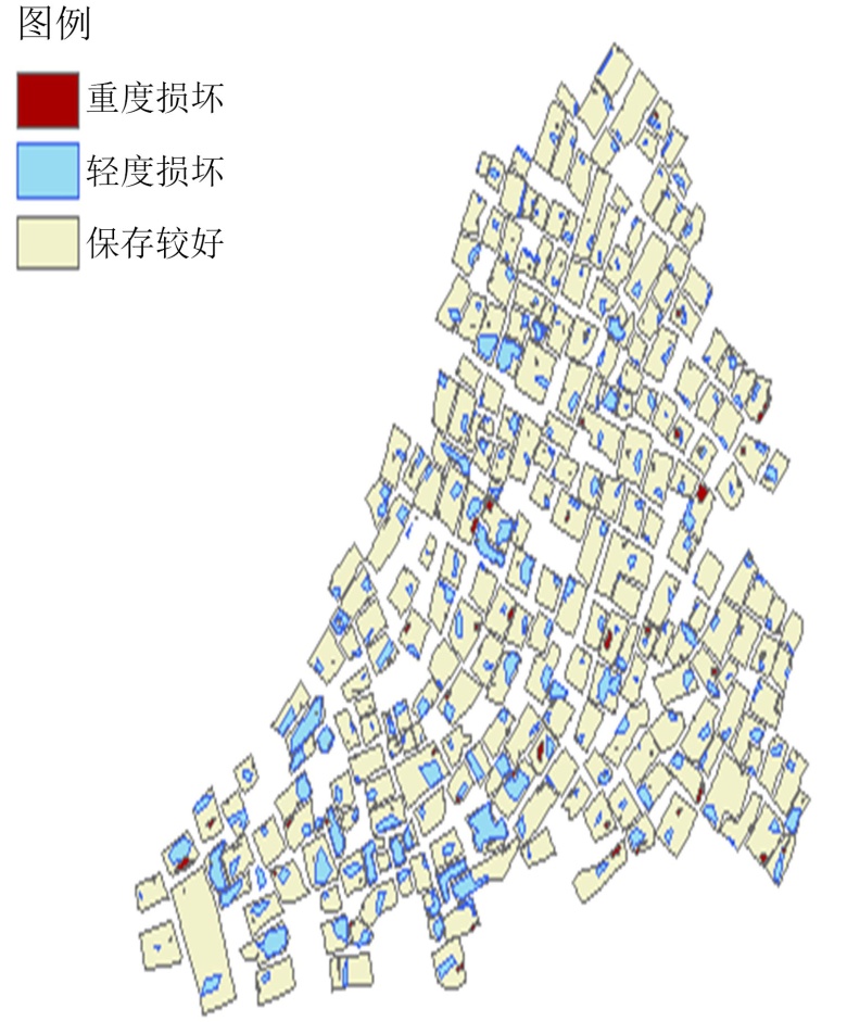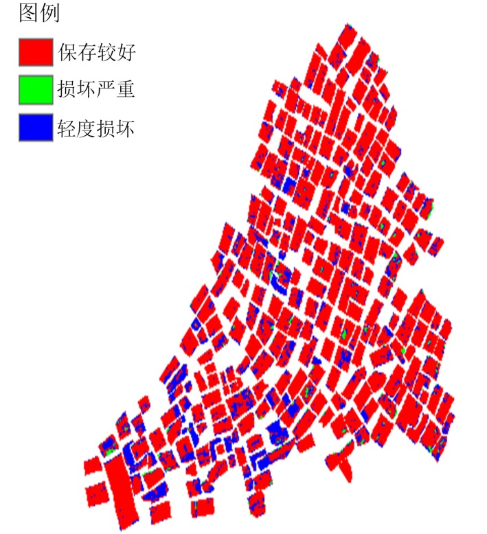 为了实现高分辨率传统民居建筑信息分类与提取,本文提出了一种面向对象非监督分类的方法,通过试验,发现这种分类方法精度达到82%,在精度提取上还算比较高。对比上甘棠村的实际损坏程度,获得的分类结果与实际相差不大,证明分类结果还是比较好。但是分类结果是针对屋顶的光谱信息,去推测整幢房屋的损坏程度,结果还是有些片面,因为房屋内部的损坏无法在影像上得到体现。在层次分析阈值设置上是根据普遍的经验设置的,可能与实际情况稍有偏差。面向对象分类的方法在提取遥感数据上还需要进一步改进,使分类精度进一步提升,以推动传统民居建筑信息提取的实践和应用。