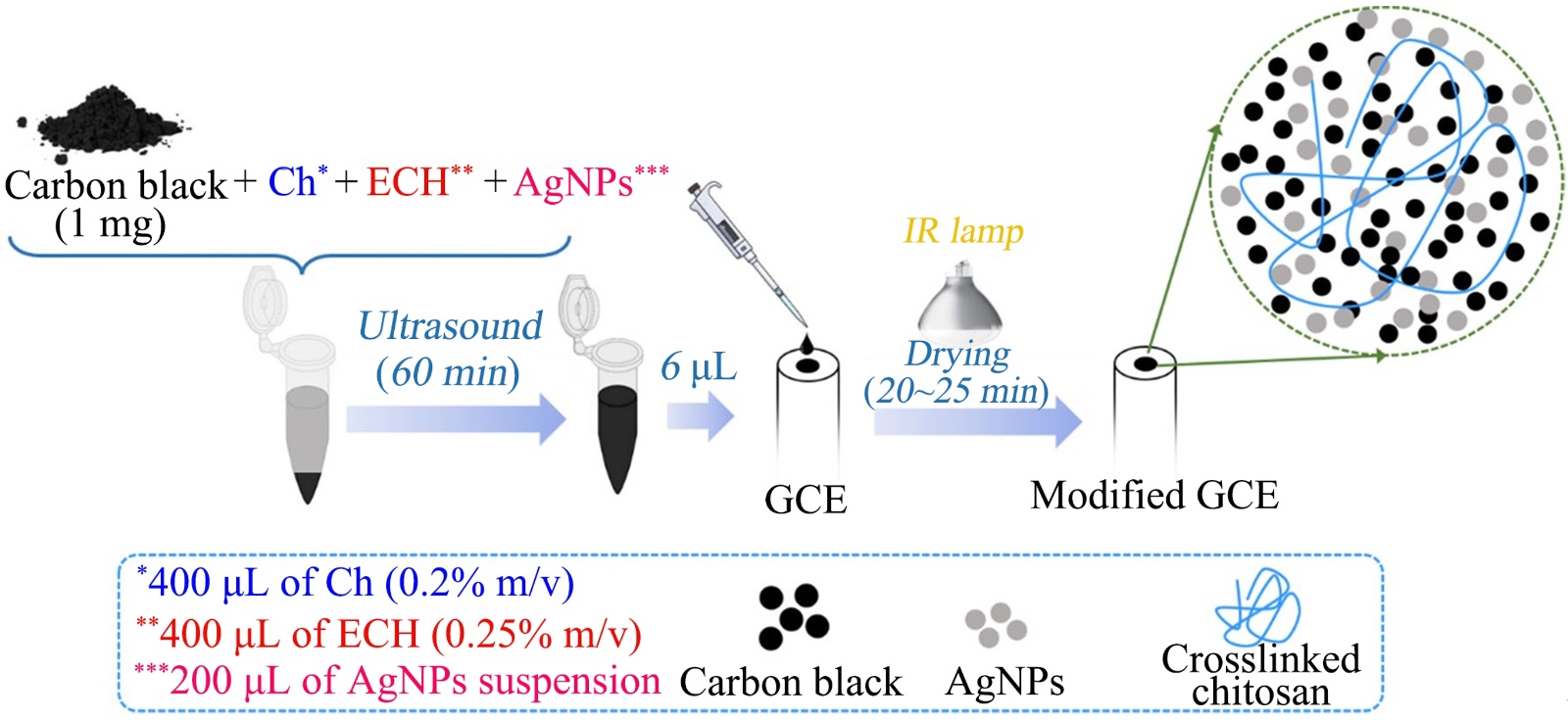 Meireles, L.M., Silva, R.M., da Silva, R.C., Okumura, L.L., Moreira, R.P.L. and Silva, T.A. (2024) Low-Cost Electrochemical Sensor for Ciprofloxacin Antibiotic Based on Green-Synthesized Silver Nanoparticles and Carbon Black. Journal of Solid State Electrochemistry, 29, 3111-3122. [Google Scholar] [CrossRef]