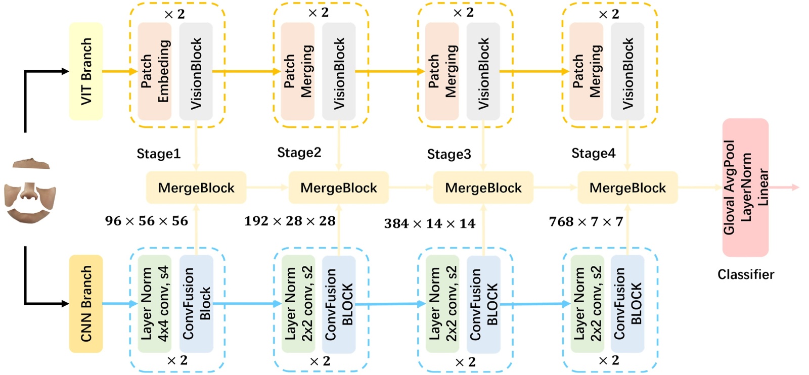 因此,本文旨在设计一种较为轻量化的双路径混合网络NexusNet,通过实现局部细节与全局语义的协同建模,为面向真实复杂场景的面色识别任务提供一种结构紧凑且性能可靠的解决方案。