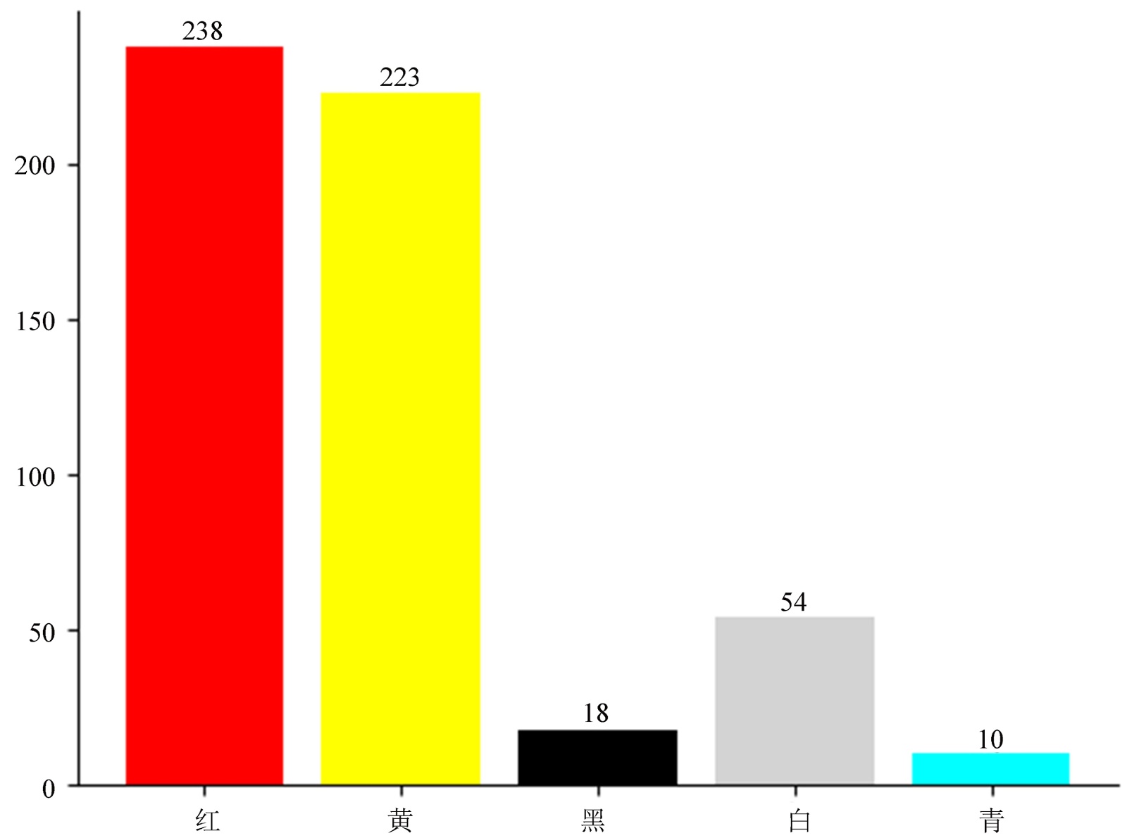 为系统评估NexusNet在面色分类任务中的性能,本研究在两个具有不同采集条件的中医面色数据集—Face5c与Face3c上进行了对比实验。所有数据均在专业中医师指导下完成标注,统一遵循红、黄、青、白、黑五类面色分类标准。两个数据集的样本分布情况分别如图6与图7所示。在实验划分上,采用分层抽样方法将各数据集按8:1:1的比例划分为训练集、验证集与测试集,以保证数据分布的均衡性与实验结果的可靠性。