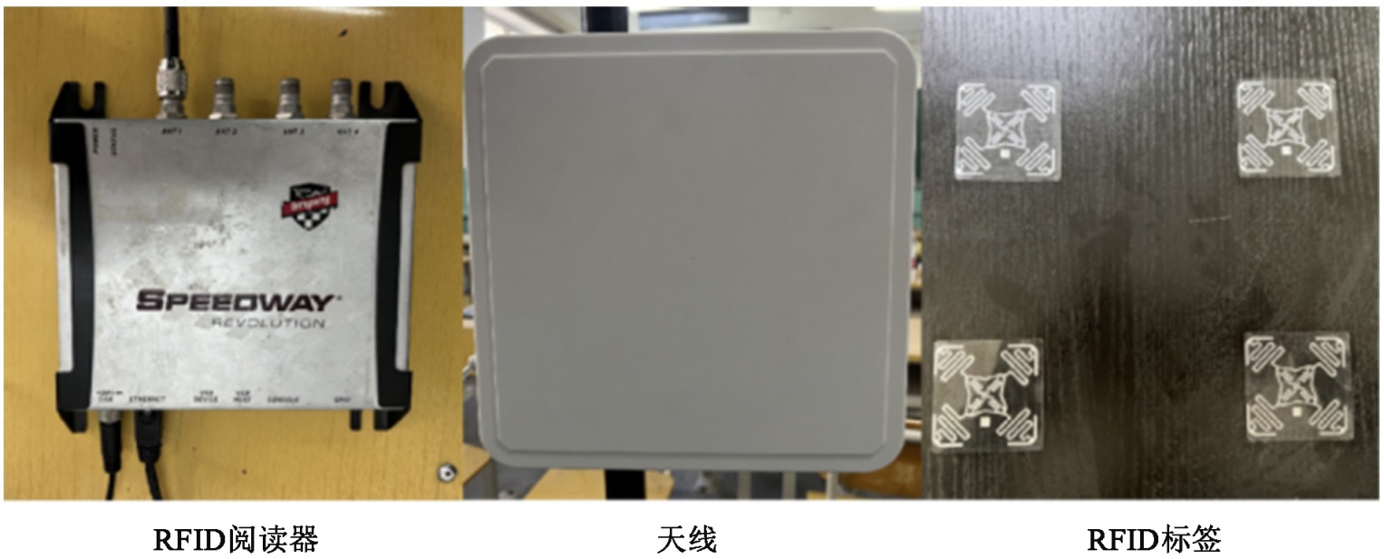 本实验所采用的硬件设施主要由4部分组成,如图6所示。具体包括:工作频率为920.875 MHz的Impinj Speedway R420型RFID读写器、一副圆极化UHF天线、4个尺寸为5 cm × 5 cm的UHF无源标签,以及一台搭载Intel i5-1135G7处理器的笔记本电脑。上述设备共同构建了实验所需的射频识别采集平台。