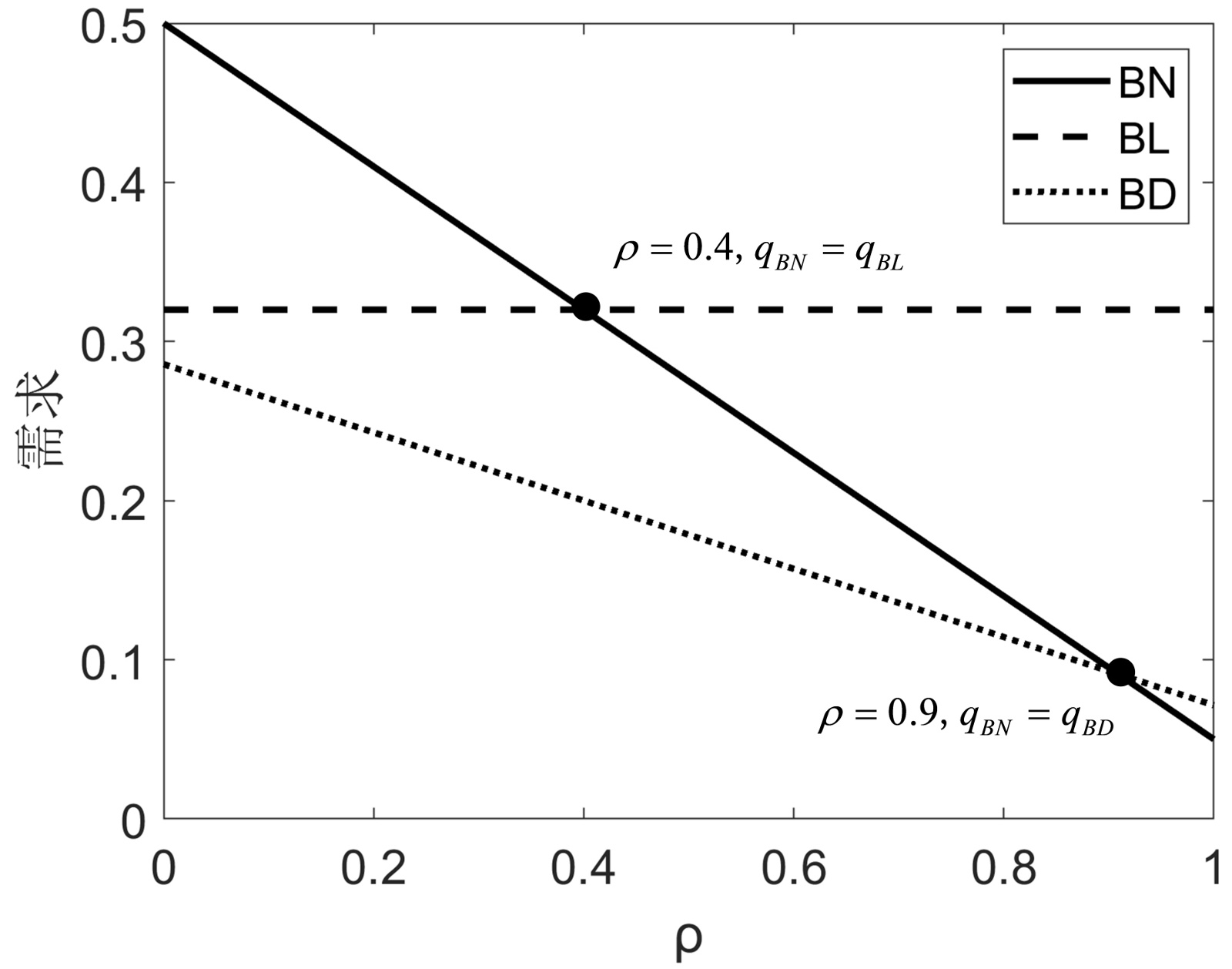 图1. ρ对捆绑产品需求的影响