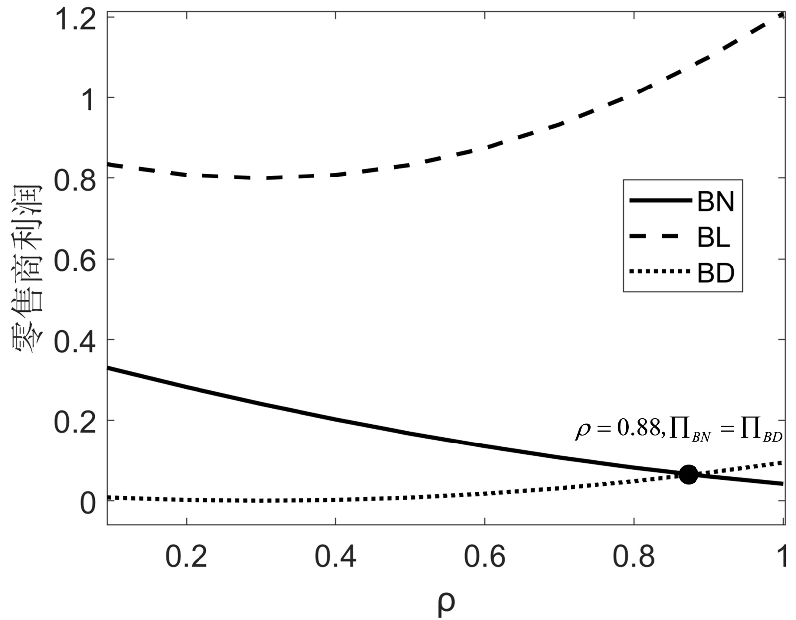 Figure 2. The impact of ρ on retailer profit