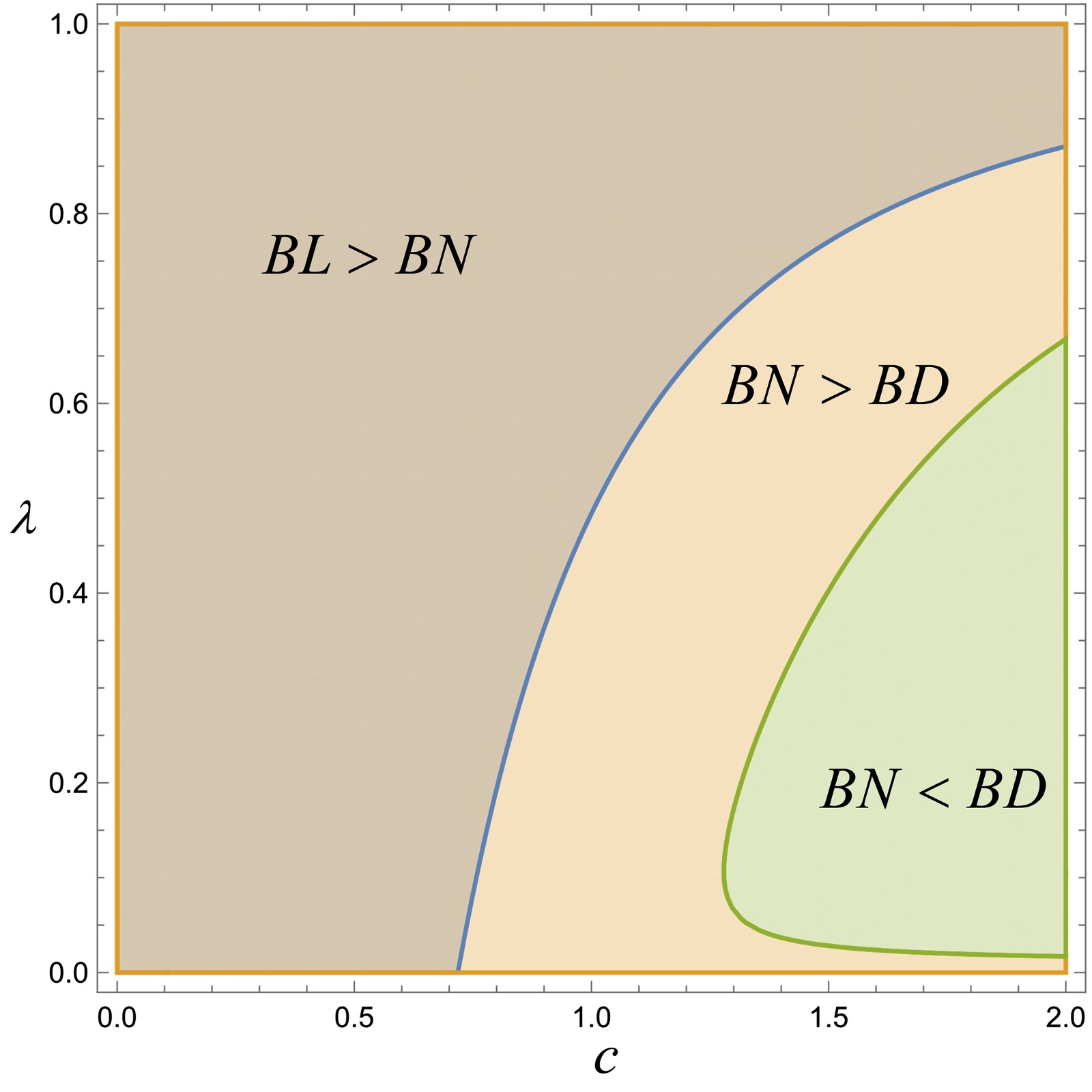 图5. c和λ对最优策略的影响