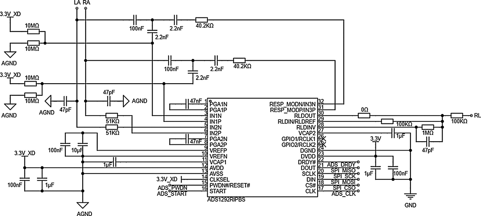 Figure 2. Schematic diagram of ECG acquisition circuit