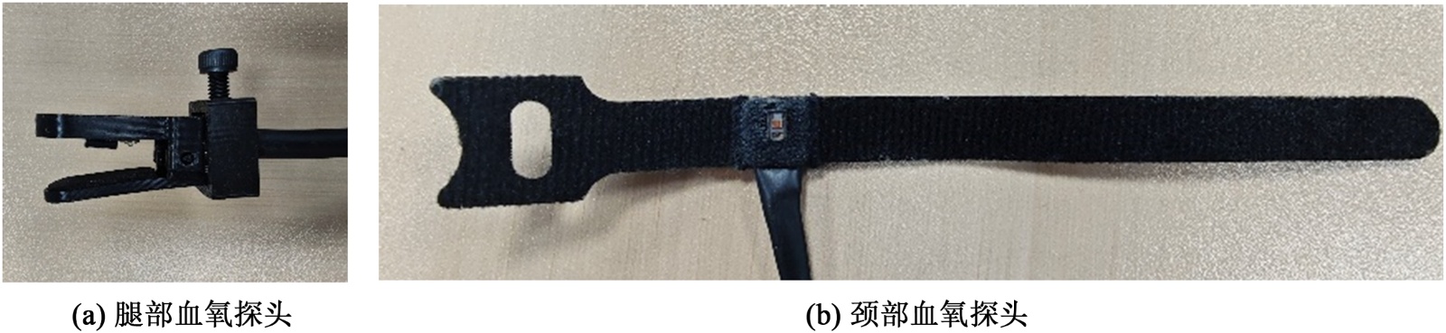 为夹式结构,一侧集成传感器,另一侧贴有黑色遮光泡棉以隔绝环境光。为确保探头固定稳定且不对动物造成损伤或影响血流,对夹持力与材料进行了专门考量。腿部夹式探头的弹簧可提供约20 g的恒定夹持力,并设有限位器控制夹持角度。探头周围与皮肤接触部位使用医用级硅胶填充,具有生物相容性与柔韧性。颈部血氧探头则将传感器缝入魔术贴中,仅露出光电传感区域。固定时以不引起皮肤明显褶皱为度,其压力通过调节贴合松紧度进行控制。两种设计均在保证光学窗口与组织紧密贴合以获取稳定信号的前提下,最大限度减少了对动物的机械刺激。传感器通过IIC协议将光电容积脉搏波数据发送至主控制器,并采用可插拔的M8航空接口与数据采集终端连接。