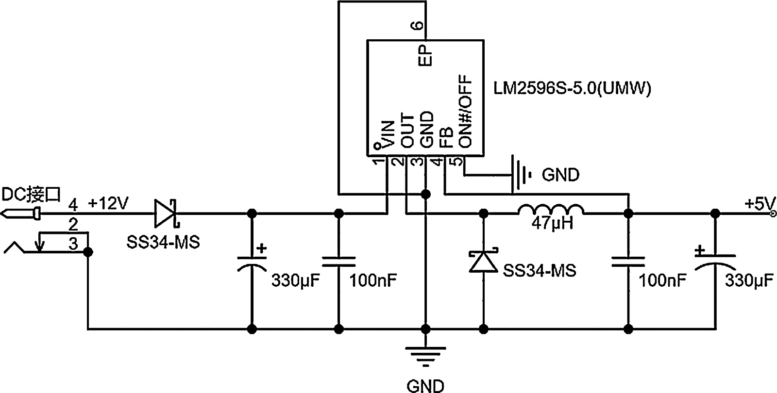 Figure 7. Schematic diagram of 12 V to 5 V circuit
