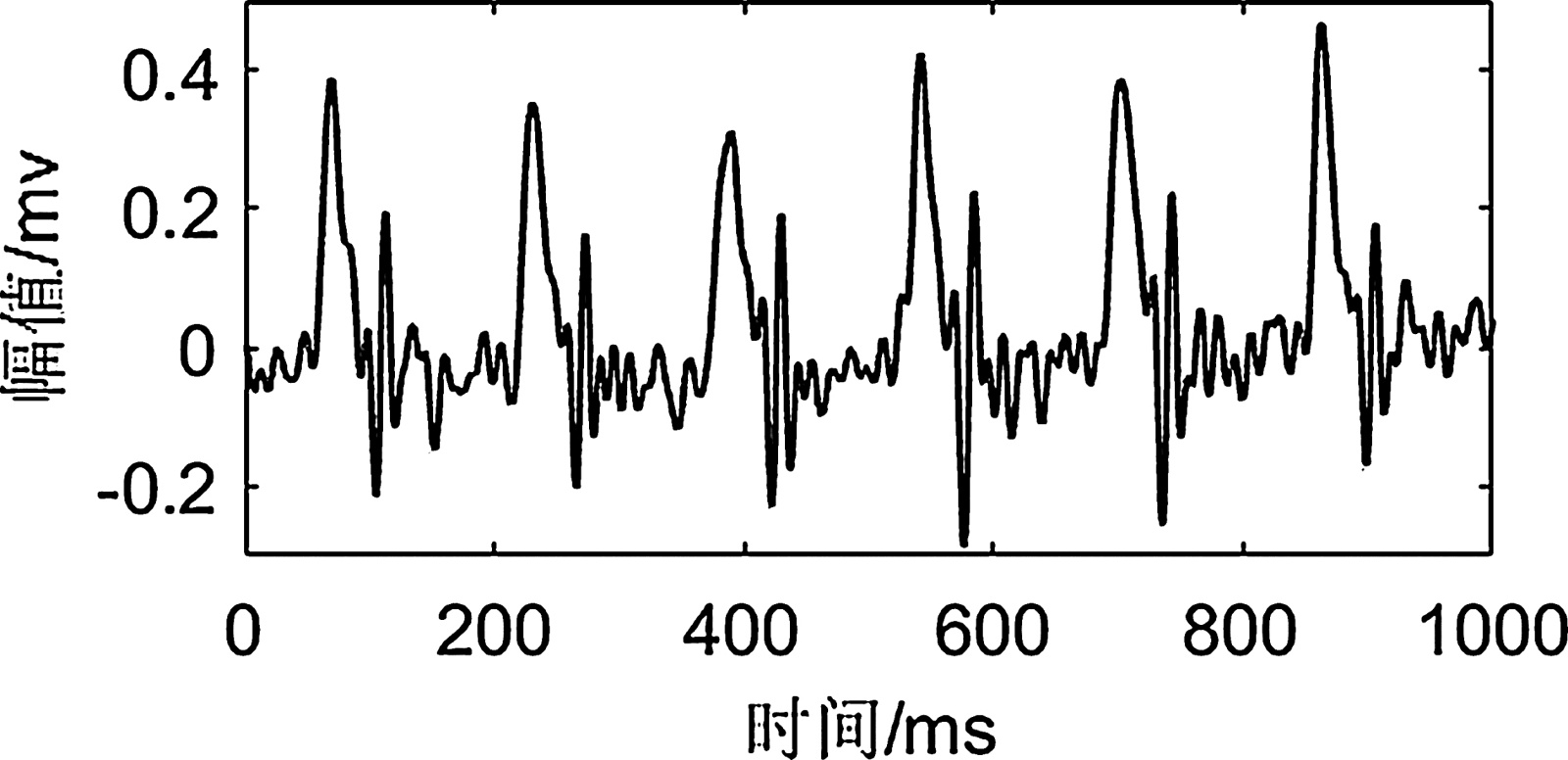 于实验鼠左前肢、右前肢及右后肢涂抹导电凝胶[21],确保其与平台上的心电电极良好接触。截取其中1秒数据,采集到的心电信号如图12所示。由于无创采集方式的原因,所获取的心电信号质量相较于
