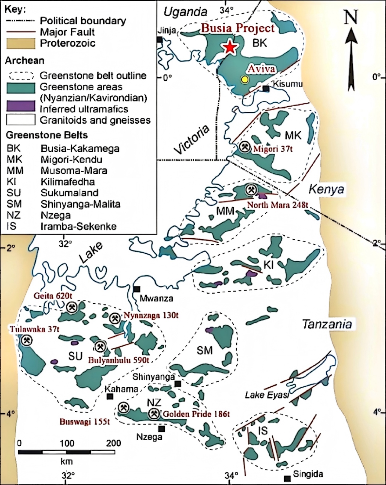 Figure 1. Distribution map of greenstone-type gold deposits around Lake Victoria